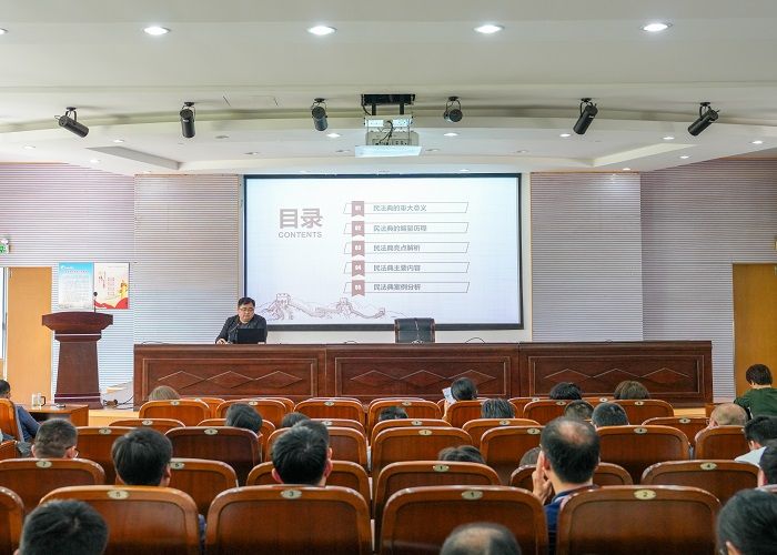 5月22日下午,公司在土木馆报告厅开展《民法典》集中学习活动,公司党委书记谷伟主讲,全体教职工参加。谷伟围绕《民法典》的重大意义、编纂历程、亮点分析、主要内容和案例分析等五方面内容进行了详细的解读。随后,全体教职工共同观看了《民法典》宣传教育漫画,漫画展现的是大家日常生活息息相关并受到广泛关注的几个亮点,让参会教职工深切地感受到了《民法典》其实就在我们的身边。会前,公司还组织教职工参加了民法典专项答题活动。