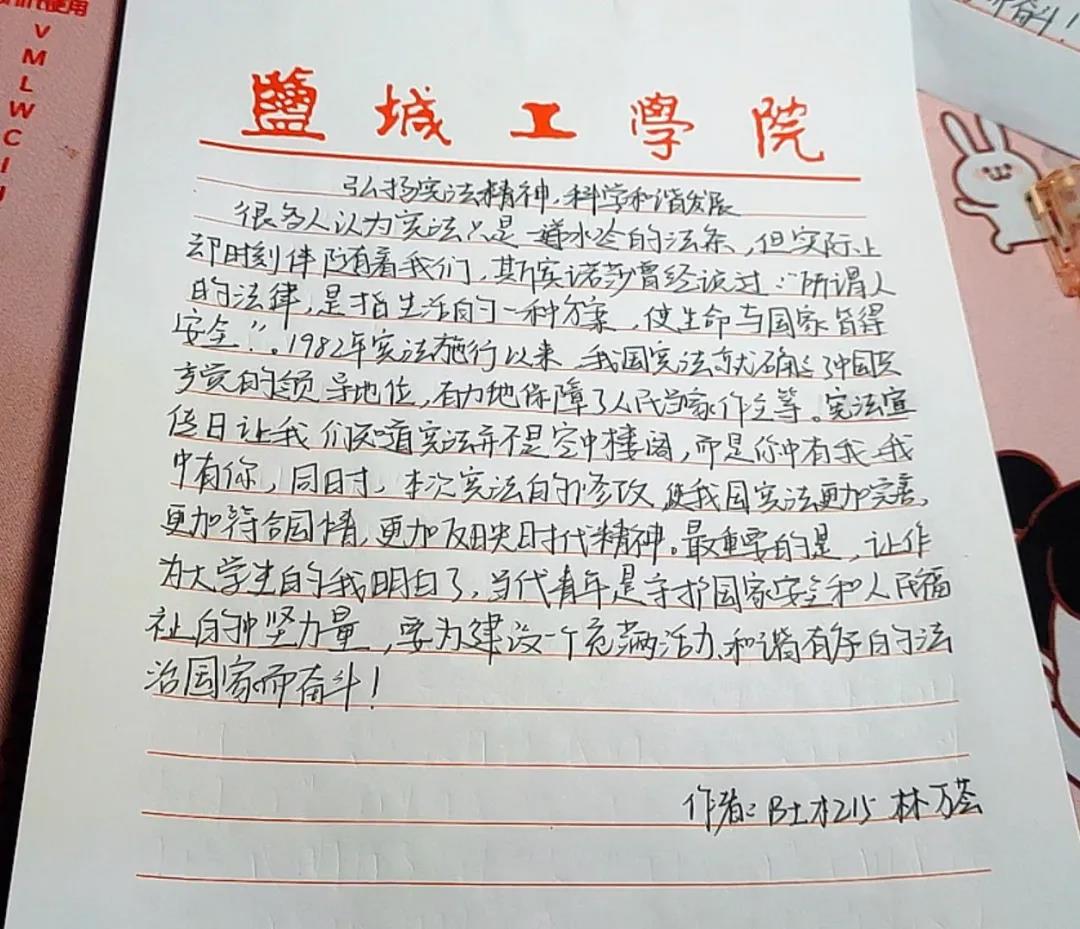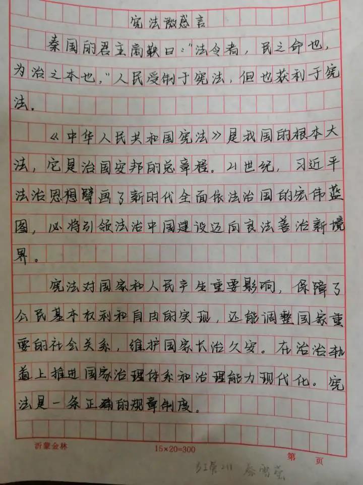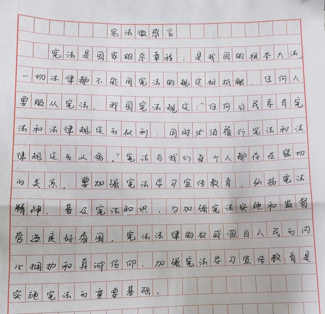 通过同学们的微感言,沐沐深深的感受到了大家对宪法发自肺腑的感慨和尊重。希望我们能够携起手来,严格遵守各项法律、法规,自觉抵制各种不良行为,相互帮助,团结奋进;一起学法、知法、守法,争做新时代好青年。用我们美好的心灵净化身边的丑恶,用我们灵巧的双手共创和谐的校园,共建人类的文明。