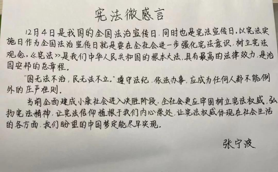 11月30日晚,PlayAce在全院范围内举行了“以习近平法治为指引,坚定不移走中国特色社会主义法治道路”主题班会。首先,各班团支书向班级同学介绍了宪法作为国家根本大法和治国安邦总章程的重要地位,强调了宪法在推动落实依宪治国方面的积极意义,倡导同学们对宪法保持敬畏之心,做到遵守宪法、维护宪法、运用宪法。其次,各班文体委员播放了微电影《宪法一生》。影片通过老人回忆孩子的成长历程,引入宪法,将“宪法”比喻成父亲一样呵护孩子的成长,展示了宪法对公民默默的陪伴与守护。此外,各班同学还积极参加第六届全国员工“学宪法 讲宪法”活动,在线完成了学习、练习及综合评价,并纷纷在“宪法宣传周”微感言征集活动中,通过手写感言表达了对宪法精神的尊崇。