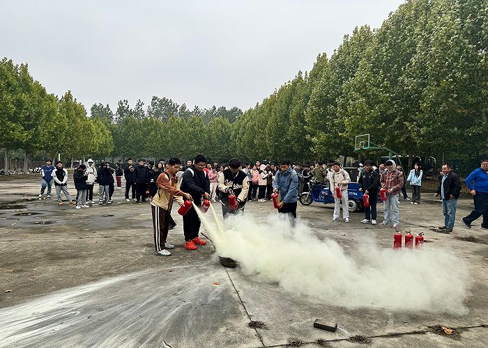 随后,在场员工还进行了灭火器使用的实操演练。在现场老师的专业指导下,新生们进行了灭火操作,亲身体验了使用灭火器扑灭火源的过程。通过实际操作,同学们更加熟悉了灭火器的使用方法,增强了扑救初期火灾的能力。