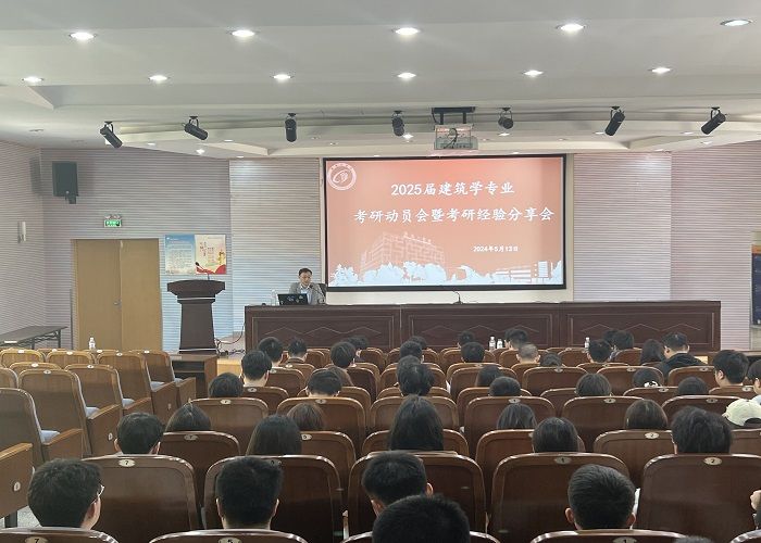 为进一步加强学风建设,充分调动2025届毕业生的考研积极性, 5月13日上午,PlayAce在土木馆报告厅举办2025届建筑学专业考研动员会暨考研经验分享会。建筑系主任王进教授、B建筑191班考研上岸员工代表、B建筑201、211、221班辅导员及全体员工100余人参加。会议由学工办负责人徐传洪主持。