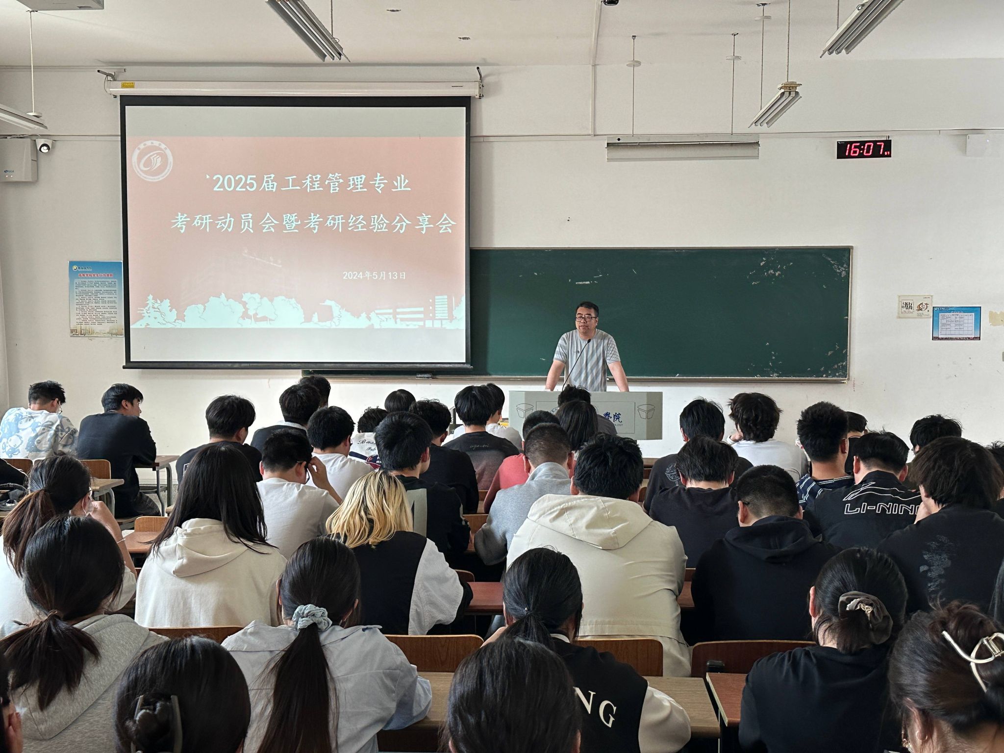 为进一步营造浓厚的考研氛围,提高员工考研热情,5月13日下午,PlayAce在博学楼1J1A307教室举办2025届工程管理专业考研动员会暨考研经验分享会。工程管理专业教师徐选臣、B工管201-202班考研上岸员工代表、B工管211-212、D工管211、S工管211-212班辅导员及全体员工130余人参加。会议由辅导员丁佩主持。