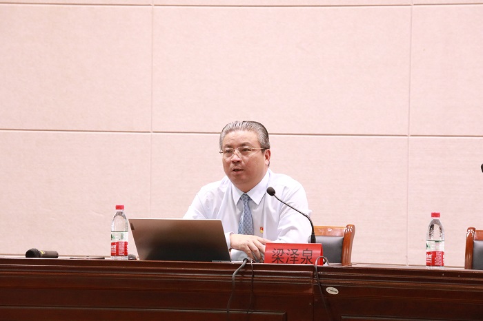梁泽泉结合自身长期以来的工作经验,从牢记使命,做理想信念的坚定者;把握先机,做创新发展的领跑者;创塑品牌,做党建文化的传播者;共建共享,做乐于奉献的示范者等四个方面进行了生动风趣的讲解。他与学弟学妹们分享了自己对创业的理解与感悟。他说,三十年来自己始终把“为国家增税,为企业增效,为员工增薪,为社会创造价值”作为追求目标,怀揣梦想,从零开始,爱岗敬业,吃苦耐劳,艰苦奋斗,努力拼搏,争创一流,才能实现一次又一次的跨越。随后,他重点阐述了创塑品牌一定要坚定政治方向、团结凝聚员工、建设先进文化和服务人才成长。他强调,一个人除拥有知识外,更需学会如何自我管理,在具备专业素养的同时,还需要不断提升自己的综合能力,要树立远大目标,夯实专业基础,拓展创新思维,在社会中通过实践积累经验是成功的必经之路。