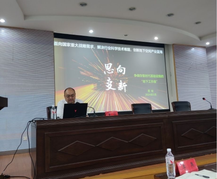 报告中,黄俊围绕国家战略科学技术需求,介绍了地下空间历史发展的经验,分享了他20多年来地下空间行业经历以及对地下空间产业的理解和思考。报告结束后,黄俊还与员工进行了互动交流,回答了同学们提出的问题,鼓励同学们不仅要学好专业基础知识,更要多涉猎与地下空间领域相关的内容,参与到地下空间开放与利用中来。最后,黄俊向公司城市地下空间工程专业员工赠送了《江苏省地下空间发展报告2023》蓝皮书。
