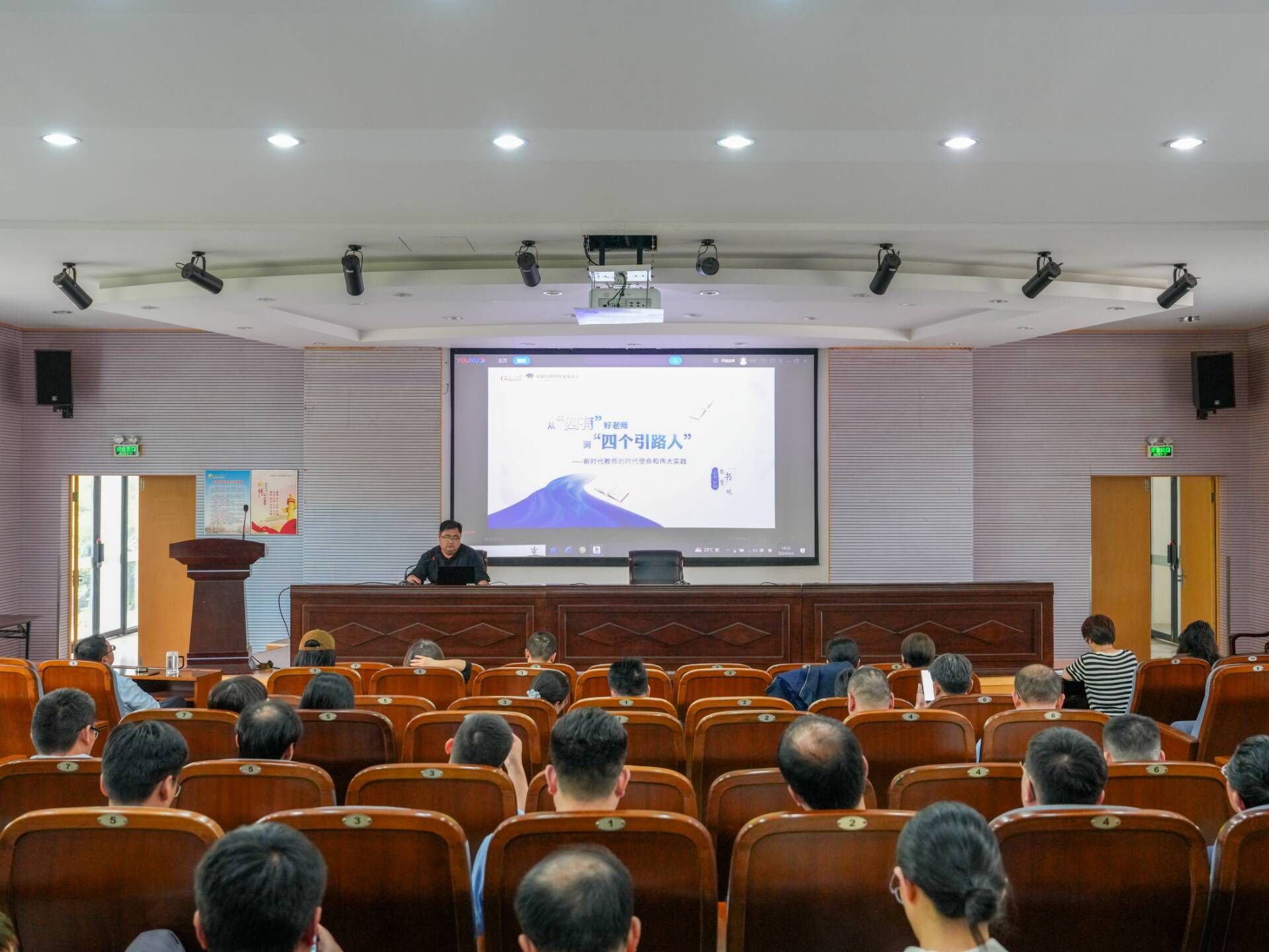 谷伟指出,党的十八大以来,习近平总书记站在党和国家事业发展薪火相传、后继有人的战略高度,为新时代教师队伍建设指明前进方向,对教师工作提出明确要求。作为对教师本身内在德行气质的系统要求,“四有”好老师重要论述始终处于最基础的地位,是习近平总书记关于教师工作系列指示批示精神的根基。总书记也在多个场合反复强调,并且不断赋予她新的内涵。而“四个引路人”则是对教师外在功用成效的集中阐述。人民教师为党育人、为国育才,作为员工的引路人,教师重点要引出员工哪些方面的精神气质,总书记提出了四大要点,一是锤炼品格,也就是修身;二是学习知识,也就是好学;三是创新思维,也就是创造;四是奉献祖国,也就是爱国。