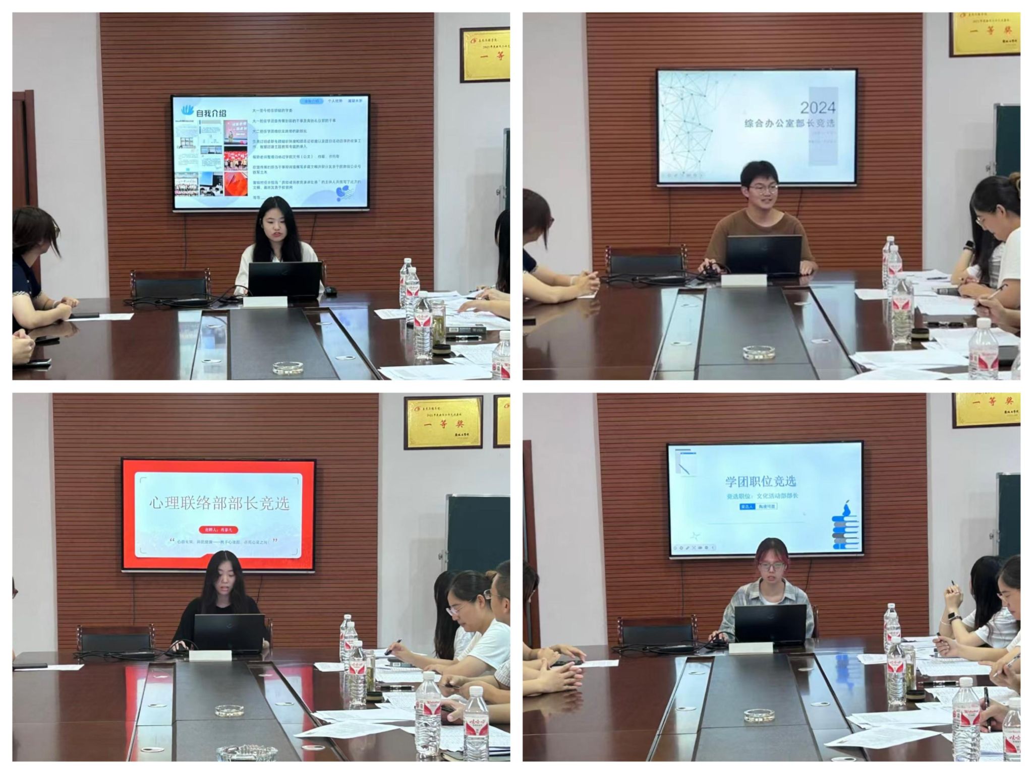 首先,林万荟、顾晖就上一届联系我们进行了总结和回顾,就如何进一步提升学团组织的服务水平、丰富校园文化生活、加强员工社会实践等方面提出了建议。随后19名候选人结合PPT从个人基本情况、竞聘岗位及优势、未来工作规划等方面进行了汇报。