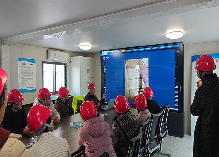 东台金融服务中心由江苏金贸建设集团EPC总承包,该项目采用多项智能机器人技术提升施工质量和安全性能,智慧工地管理平台提升管理水平,BIM+3D打印技术助力项目全生命周期管理,推动了盐城建筑业转型升级和高质量发展。在施工现场,智能施工升降机、智能搬运物流机器人,以及激光整平、抹光、室内喷涂等多款机器人频繁出现在工作中。这些机器人大幅度提升了施工质量与安全性,同时有效节省了人工成本,实现了资源的合理配置。项目负责人还精心组织安排大家观看了全市智能建造工作情况专题片,介绍了东台金融服务中心项目实施全过程。项目部技术人员为大家展示智慧工地场景应用、VR安全体验、质量管理、智能建造技术场景应用等,并指导大家亲身体验项目现场安全体验区。