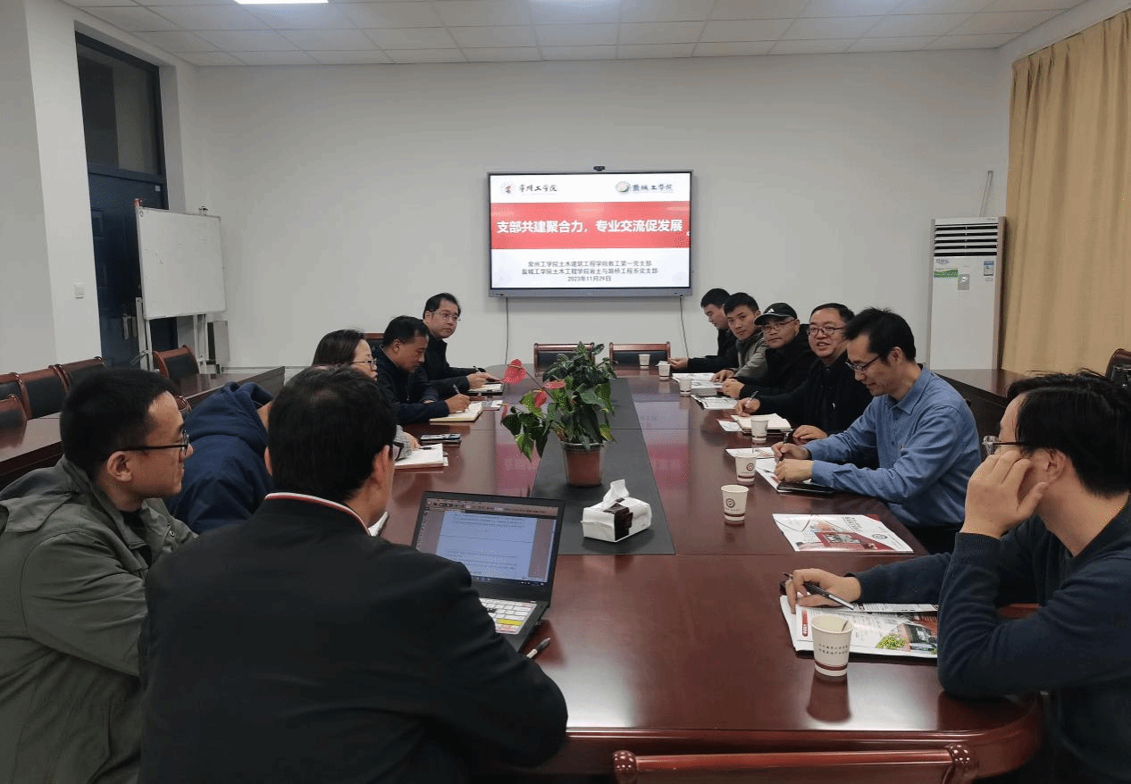 在常州工公司,土木建筑工程公司党委书记朱建群、经理李书进、副经理傅睿、教工第一支部书记吴昌胜、地下工程系主任李鹏程等参加共建活动。双方围绕样板支部建设、专业认证、人才培养等方面进行深入交流。活动结束后,支部成员一行参观了公司校企共建的土木工程实验中心。