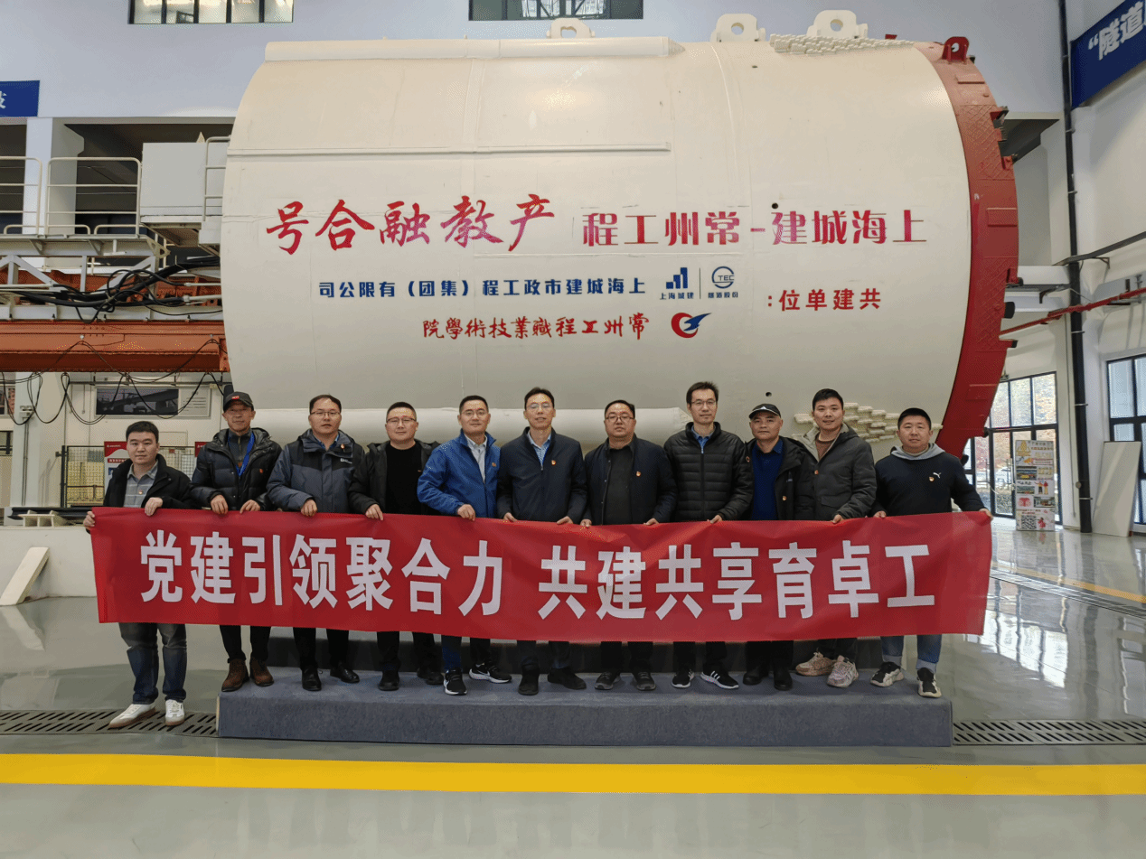 在常州工程职业技术公司,建工公司党委书记徐永红、经理刘文斌、副经理郁邦永、副经理徐小明、数字交通党支部书记李灵、数字交通教研室主任岳翎参加共建活动,共同参观了公司党建园、“红色精神印初心、携手奋进新征程”作品展,走访了金土地建设集团有限公司工研荟科技产业园项目部。双方还共同为公司城市地下空间工程专业实习基地授牌。常州工程职业技术公司作为国内唯一一所拥有实体盾构机的高校,将为公司城市地下空间工程专业实习提供有力的条件支持。