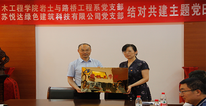 活动期间,双方分别介绍了单位的具体情况和发展愿景,重点交流了悦达胡友林创业史和公司土木工程专业发展史,并就党建工作、产学研合作、招生、人才培养等进行深入交流。交流结束后,双方一同前往公司铁军广场向革命英烈敬献花篮,并共同参观悦达集团总部的悦达创业历程和党建成果展。期间,王照宇陈明岸签订产学研合作协议,顾志兰与陈明岸共同为“产学研合作基地”揭牌。