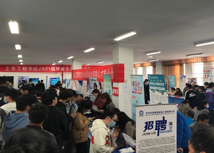 本次推介会吸引了中国核工业华兴建设有限公司、中国化学工程第十四建设有限公司、中邮通建设咨询有限公司、中铁十局集团有限公司、中交第二公路工程局有限公司、中建安装集团有限公司苏杭分公司、中国电子系统工程第二建设有限公司、同济大学建筑设计研究院(集团)有限公司泛亚分院、上海市工程建设咨询监理有限公司、江苏中南建筑产业集团有限责任公司、北京东方雨虹防水技术有限责任公司等70多家国企、行业知名企业进校招聘。推介会分为现场咨询交流、投递简历等环节,各用人单位通过现场交流、海报展示、发放宣传小册子等方式向毕业生介绍企业的发展概况、人才需要、待遇福利、发展前景等,现场秩序井然、气氛热烈。据悉,近200名同学初步达成就业意向。
