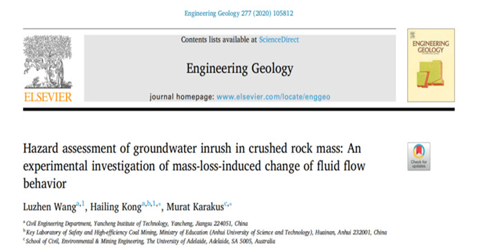 近日,在国家自然科学青年基金(11502229)资助下,公司土木工程公司王路珍副教授的研究论文《Hazard assessment of groundwater inrush in crushed rock mass: An experimental investigation of mass-loss-induced change of fluid flow behavior》(Wang et al., Eng. Geol. 2020, 277, 105812)在地球科学领域国际公认顶级期刊《Engineering Geology》上发表,该期刊2020年被列入中科院一区,2019年影响因子4.779,具有很高的行业认可度。论文针对岩土工程领域常见的破碎地质构造突水事故,提出由于破碎岩体渗透过程中存在颗粒迁移和质量流失,破碎岩体中流体流态的转变行为就是引发突水的重要原因。论文中,王路珍副教授首次提出可利用质量流失率对岩土工程中破碎岩体渗流突变的危险性进行评估,该方法可广泛应用于采矿工程、隧道工程等领域的突水危险性评估。