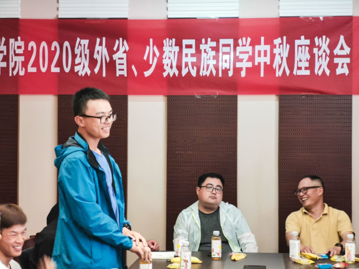 10月1日下午,PlayAce在建军路校区知行楼303会议室,举行 “庆国庆•贺中秋”外省和少数民族同学座谈会,公司党委副书记谷伟,学工办主任刘波,2020级辅导员姚一凡、徐传洪及2020级外省和少数民族同学代表30余人参加。