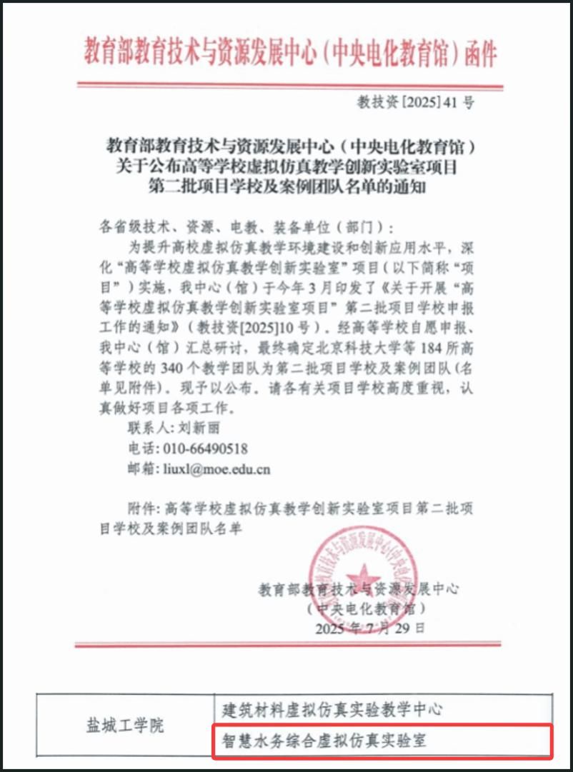 近日,教育部教育技术与资源发展中心(中央电化教育馆)正式公布高等公司虚拟仿真教学创新实验室项目第二批入选公司及案例团队名单,公司王照宇教授团队申报的“智慧水务综合虚拟仿真实验室”成功获批。