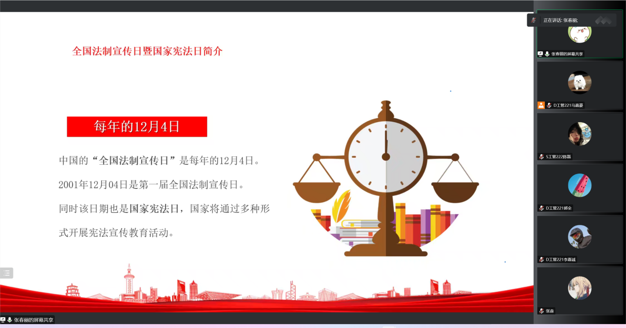 11月30日晚7点,PlayAce通过线上腾讯会议举办了“学法用法向未来”专题讲座,辅导员张春丽主持,PlayAce全体员工参加。