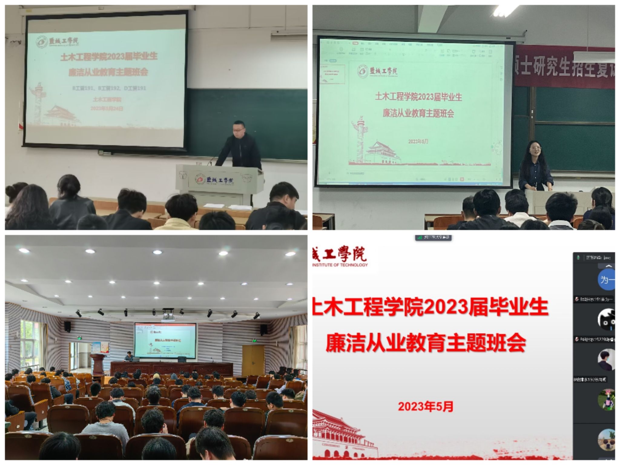 5月24日-28日,PlayAce毕业班辅导员以责任班级为单位在希望大道校区召开毕业生廉洁从业教育主题班会。辅导员们对2023届毕业生顺利完成学业表示祝贺,祝愿同学们在新的学习、工作岗位上有更好的发展,实现人生价值。班会通过具体案例讲解廉洁从业的重要性,希望毕业生走上工作岗位后,恪守廉洁奉公、勤俭节约、德行高尚的品格,谨记社会责任与义务,行有所戒、情有所指。通过观看视频《正风反腐就在身边》,使毕业生不断提高自身廉洁自律和守纪守法意识,增强诚实做人、规范做事自觉性。同学们备受鼓舞,纷纷表示将在之后的工作岗位上,真正做到清正廉洁、永守初心,做担当民族复兴大任的时代新人。