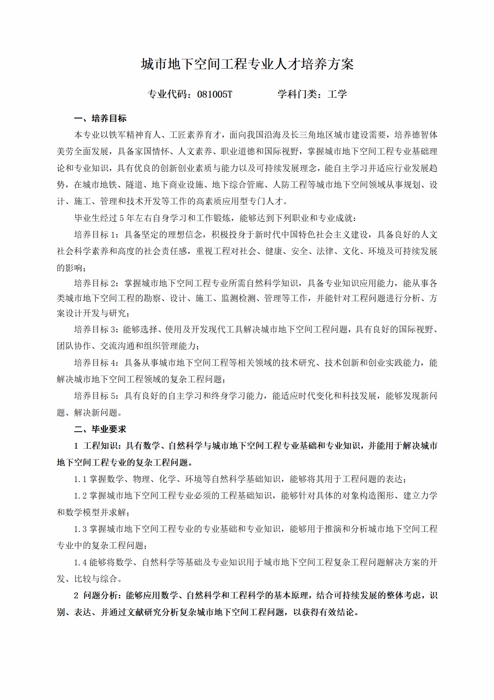 城市地下空间工程专业人才培养方案(2023版)