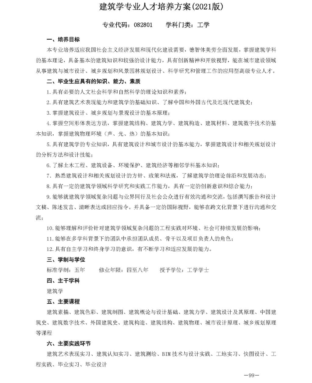 建筑学专业人才培养方案(2021版)