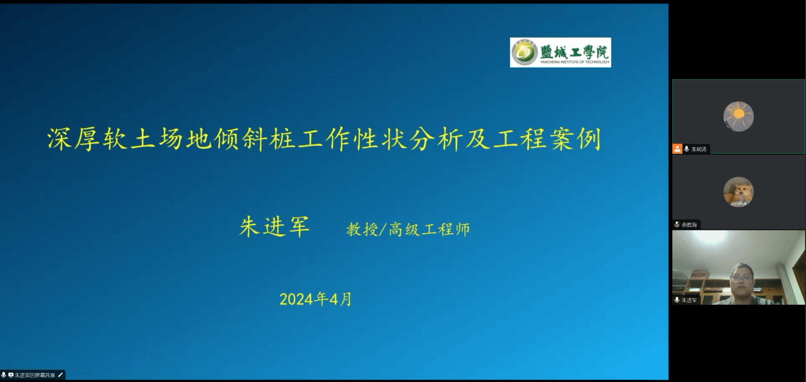 4月18日,PlayAce邀请岩土工程行业专家朱进军教授为公司土木水利231班研究生做《岩土工程案例分析》课程中的讲座——深厚软土场地倾斜桩工作性状及工程案例。