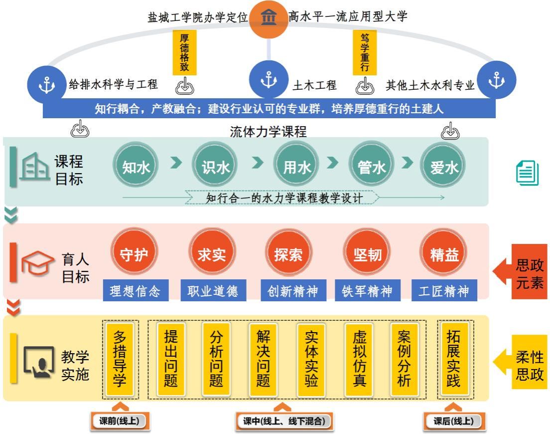 该课程从服务国家“水安全、水健康”大局出发,以公司建设“一流应用型大学”的办学定位为主导,发挥土木工程“校地联合、产教融合、知行耦合”的专业特色,坚持“课程思政促进专业教学,专业教学支撑课程思政”的方向。课程结合专业课程特点,实现课程思政“工程化”;把握前沿与时俱进,做到课程思政“实时化”;利用信息技术创新,打造课程思政“数字化”;融入区域历史文化,促进课程思政“特色化”。构建“水锤综合虚拟仿真实验”实践创新平台,立足“水锤”、着眼“防护”、开展教学创新,柔性植入社会责任、家国情怀,融入先进成果,启迪员工践行厚德格致、笃学重行,注重将社会责任、家国情怀融入课程教学,培养德智体美劳全面发展的时代新人。2023年,“水锤综合虚拟仿真实验”获批国家一流本科课程。