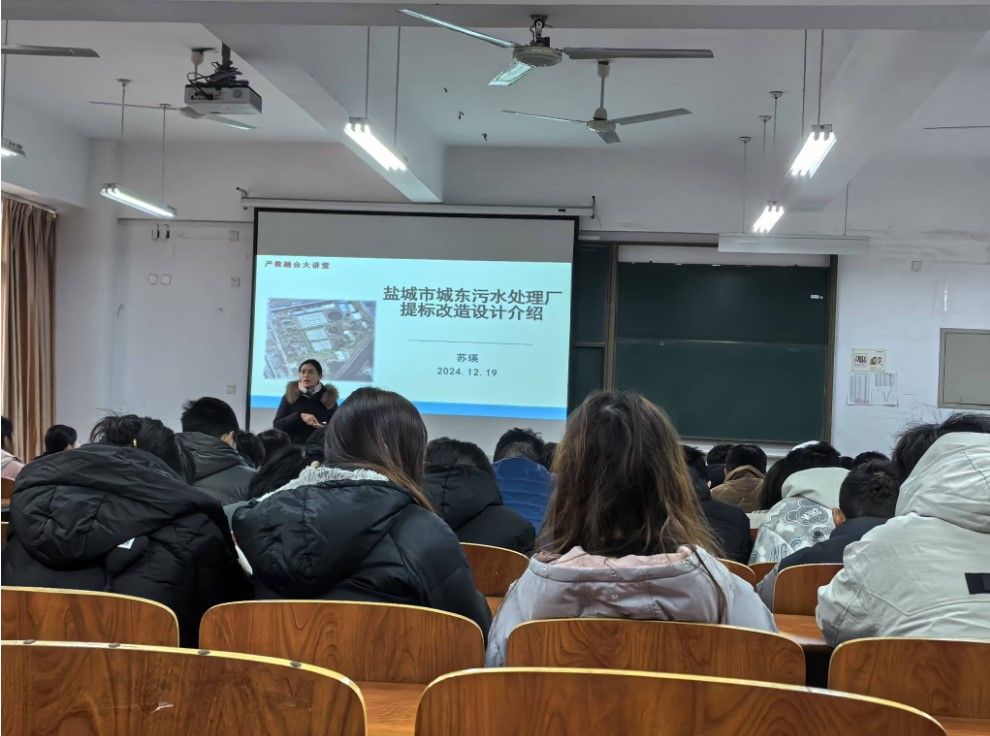 2024年12月19日,土木工程系苏瑛副教授结合企业实践经历,在土木馆A101作题为“盐城市城东污水处理厂提标改造设计介绍”的实践报告。B给排水21级、22级、23级、24级等班级60余名员工参加了此次报告会。