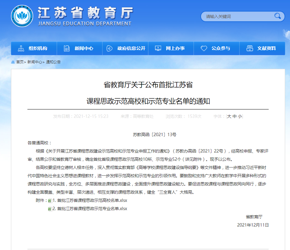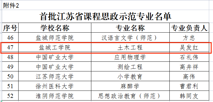 日前,江苏省教育厅公布了江苏省首批课程思政建设示范高校和示范专业,公司土木工程专业荣获江苏省首批课程思政示范专业,是全校唯一获此殊荣的专业。