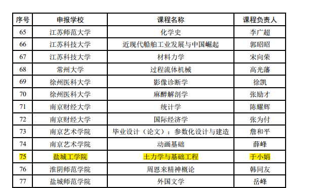 近日,江苏省教育厅公布了首批江苏省高校课程思政示范课程名单,共有本科课程98门、研究生课程30门,公司于小娟教授主持的《土力学与基础工程》获省级课程思政示范课程立项。