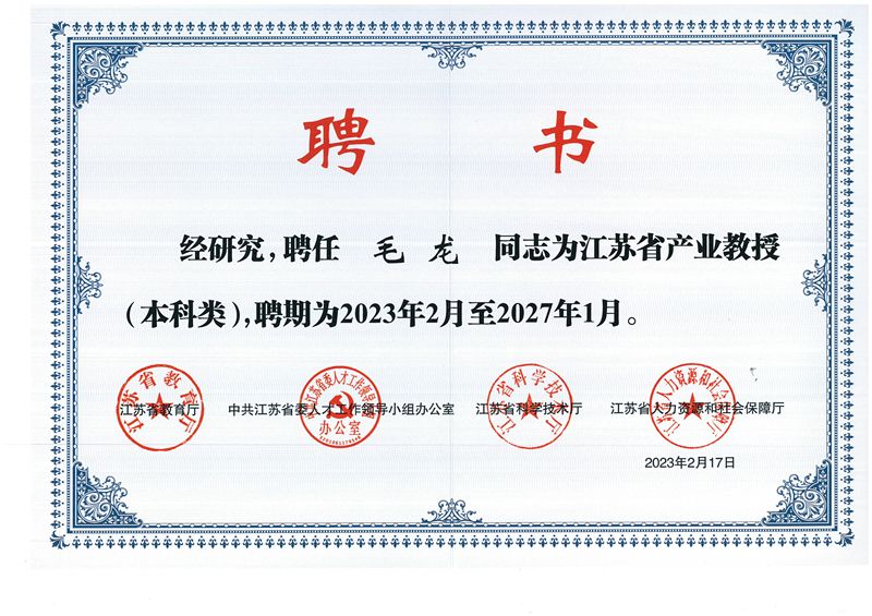 江苏省产业教授选聘工作由江苏省教育厅、江苏省人才工作领导小组办公室、江苏省科学技术厅以及江苏省人力资源和社会保障厅联合组织实施,是江苏省深化产教融合、校企协同育人,提升高校服务经济社会发展能力的重要举措,旨在以人才为纽带,团队队伍为抓手,进一步深化校企合作,推进产教融合,实现高校与企业资源的优势互补和同频共振,有效提升高校学科专业建设、人才培养、科学研究、成果转化的水平和能力。