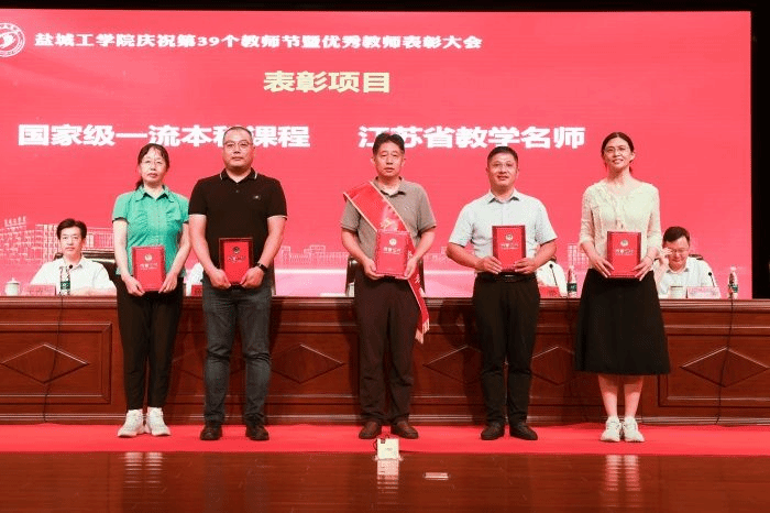 王进主任代表省级产教融合型一流课程、张忠扩、张苏苏老师作为2022-2023学年“国家级学科竞赛优秀指导教师”获奖者领奖