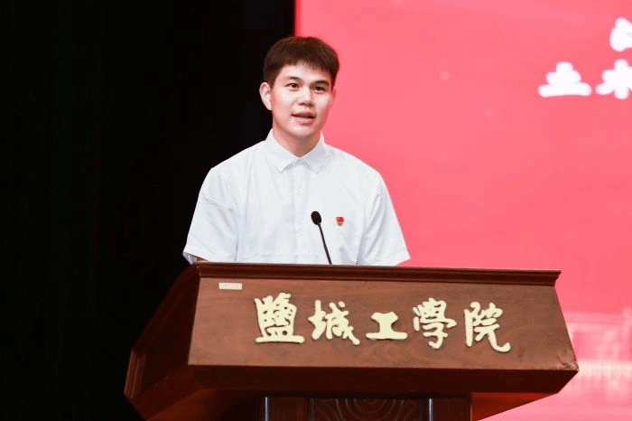 B给排水201班班长葛爱军同学作为员工代表、江苏省优秀员工干部致谢