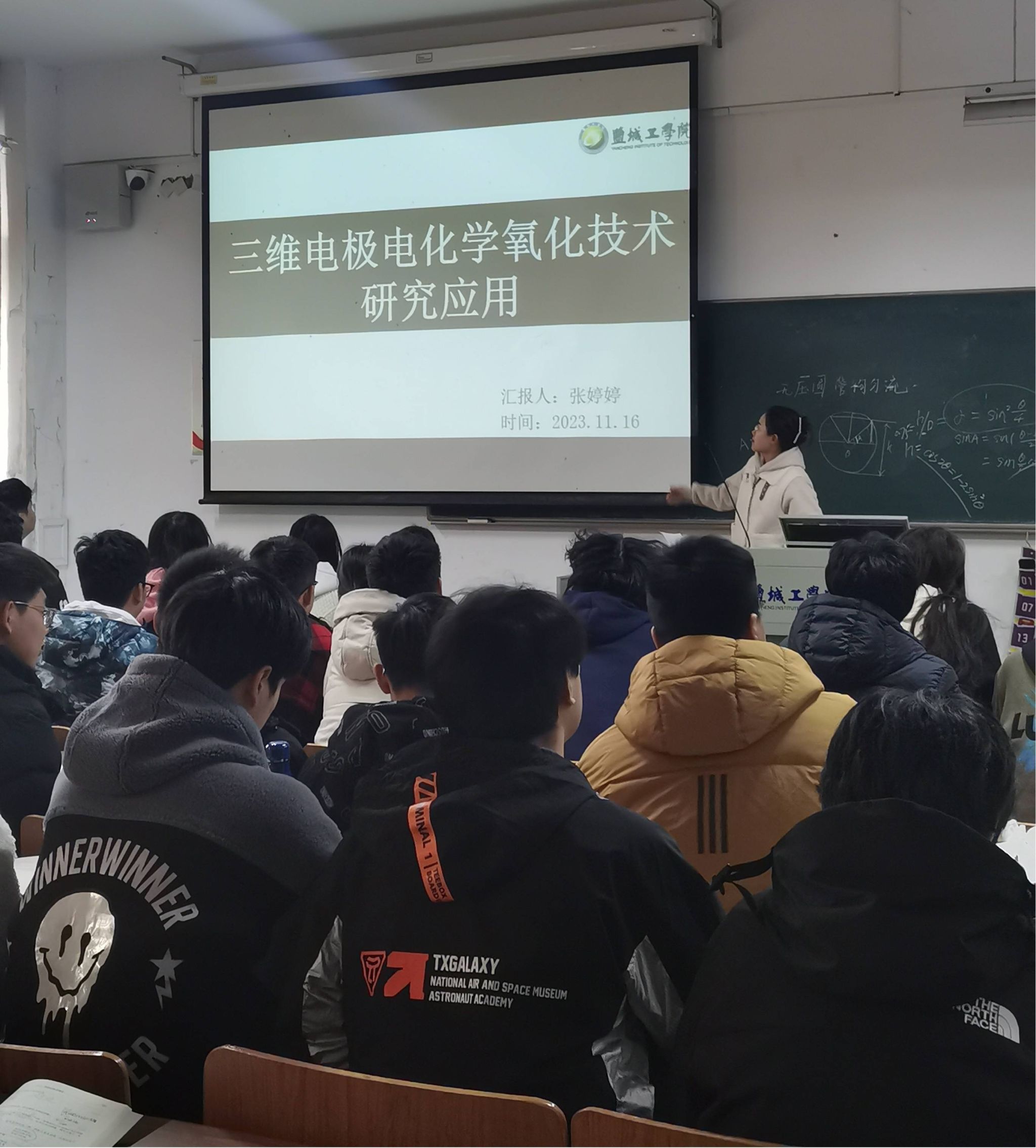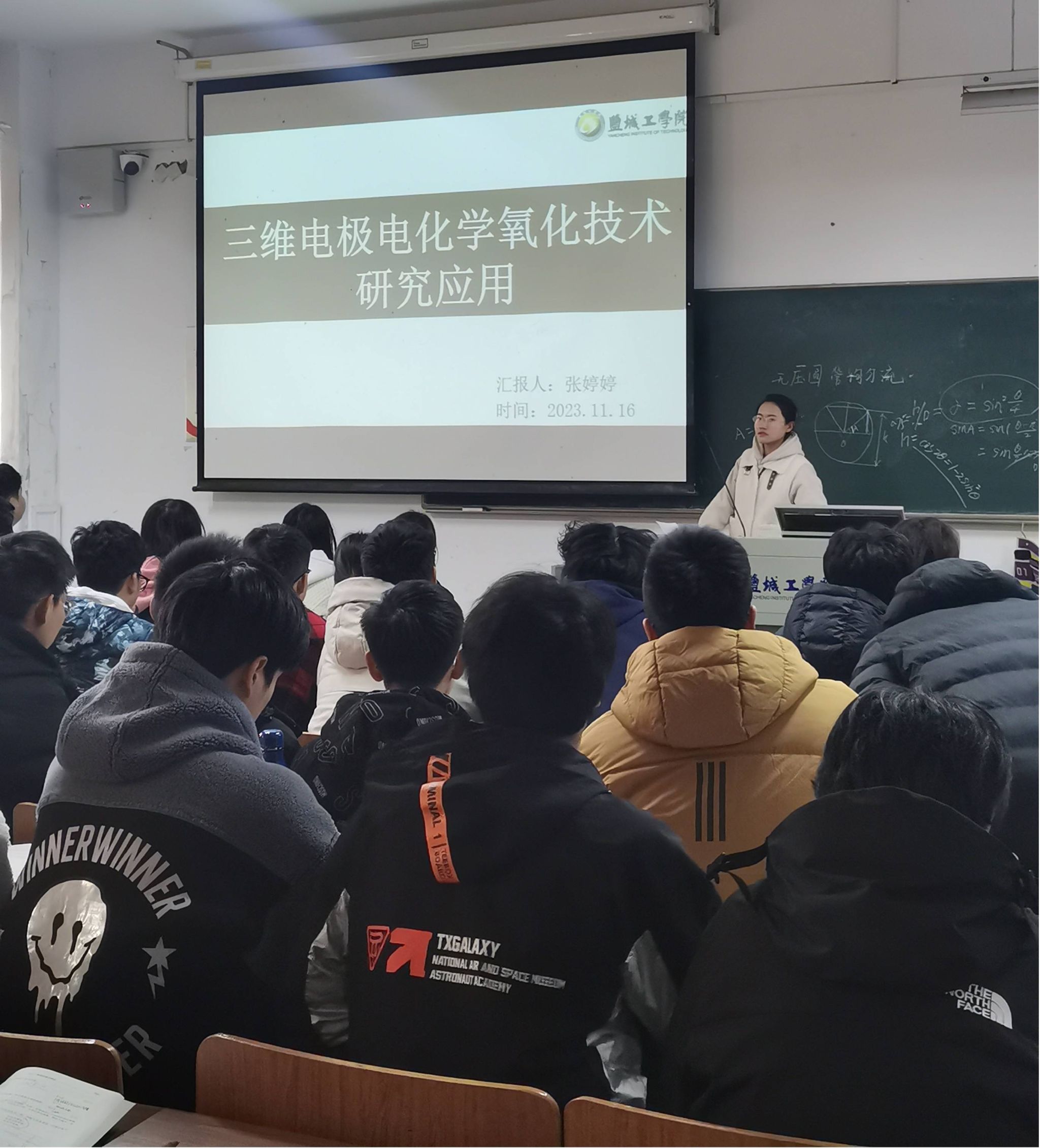 2023年,11月16日,市政工程系张婷婷博士以水质工程(二)专业课程教学为背景,结合企业实践经历,在博学楼1J1B104作题为“三维电极电化学氧化技术研究应用”实践报告,B给排水22级班员工参加了此次报告会。