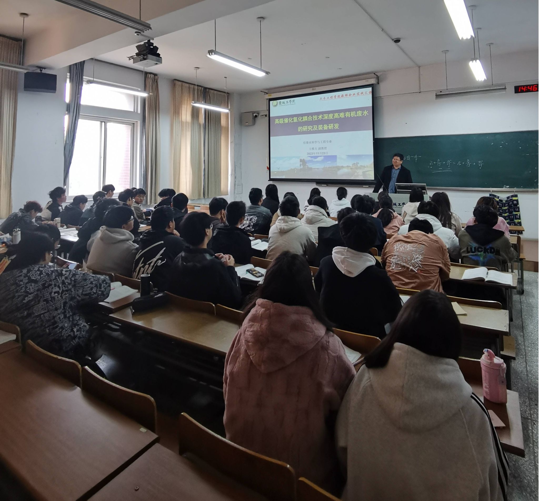 2023年,11月23日,市政工程系王维大博士以《水工艺设备基础》专业课程教学为背景,结合企业实践经历,在博学楼1J1B104作题为“高级催化氧化耦合技术深度处理高难有机废水的研究及装备研发”实践报告,B给排水221、222班员工参加了此次报告会。