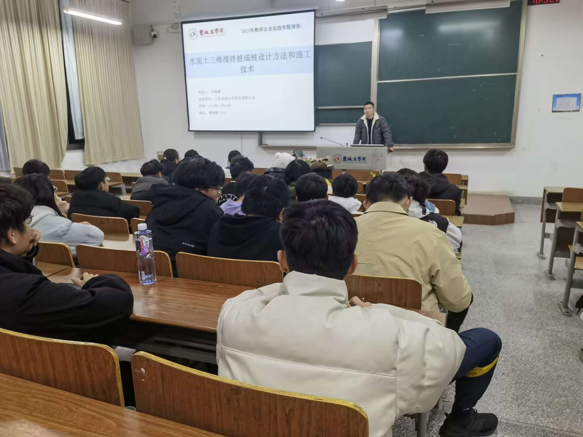 11月16日,地下工程系刘振建博士以城市地下空间工程专业课程教学为背景,结合企业实践经历,在博学楼C203作题为“水泥土三维搅拌桩成桩设计方法和施工技术”实践报告,B城市211班全体员工参加了此次报告会。