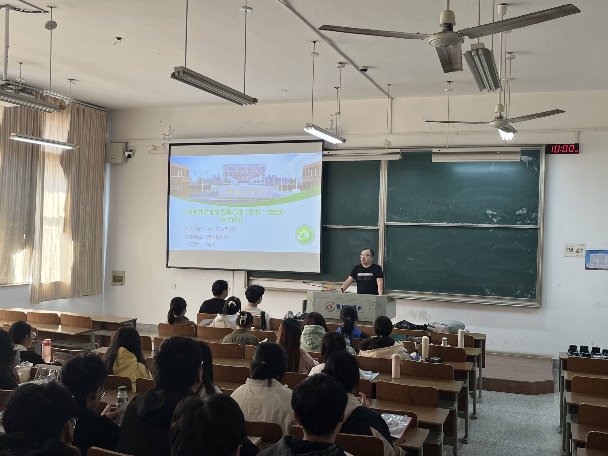 11月3日,市政工程系陈亮博士以建筑环境与能源应用工程专业课程教学为背景,结合企业实践经历,在博学楼1J1B415作题为“一种高效节能聚四氟乙烯(粉料)技术研究”实践报告,B建能201班部分员工和B建能211班全体员工参加了此次报告会。