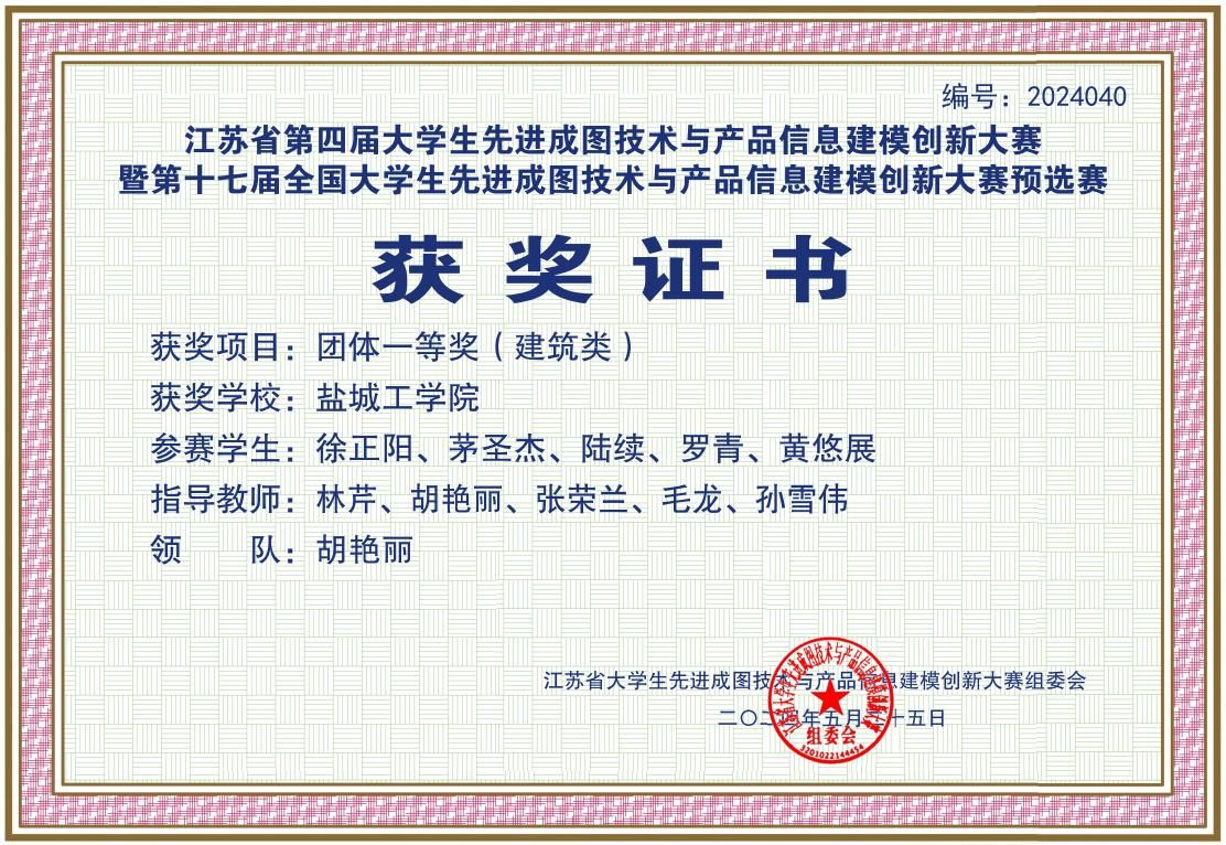 2024年5月25日,由江苏省工程图学学会与南京工业大学共同主办,东南大学承办的江苏省第四届老员工先进成图技术与产品信息建模创新大赛暨第十七届全国老员工先进成图技术与产品信息建模创新大赛江苏省预选赛在东南大学九龙湖校区成功举行。PlayAce组成的建筑类代表队再次获团体一等奖(位列全省第3名),并获个人全能一等奖3项、二等奖7项、三等奖2项,其中10人晋级国赛。