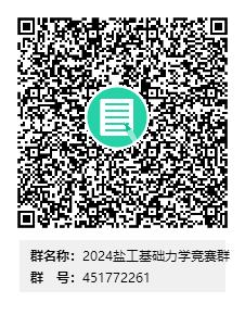 群名称:2024盐工基础力学竞赛群 (竞赛时间、地点及最新信息都将在竞赛QQ群中发布,进群后请按要求实名,否则将踢出并取消竞赛资格)