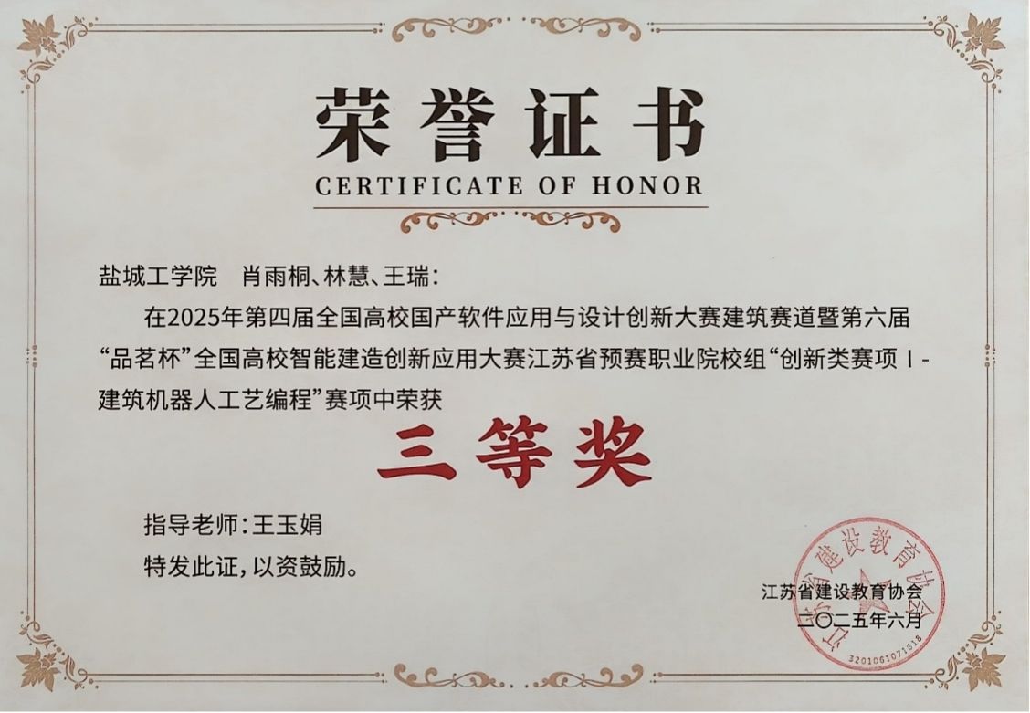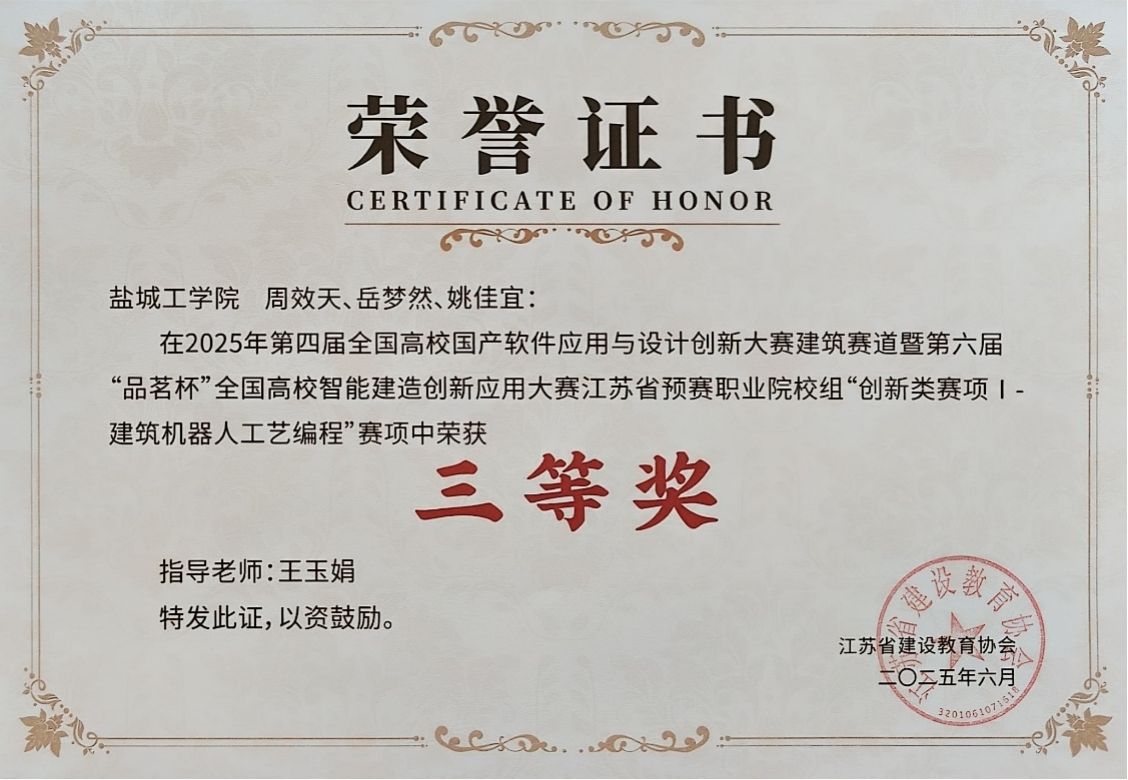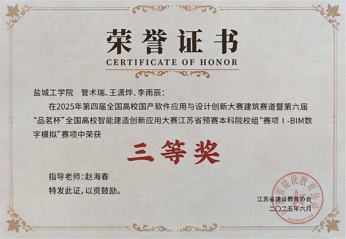 本次省赛赛共设“BIM数字模拟”、“数字化工程造价管控”、“数字化施工方案设计”、“智能建造技术”、“建筑机器人工艺编程”等5个赛项,涉及土木工程、工程管理、建筑学、给排水科学与工程、城市地下空间工程、建筑环境与能源应用工程等公司所有专业。本次竞赛自启动以来便得到公司的高度关注与全力支持。此次斩获佳绩,不仅是对公司学子创新实践能力、团队协作意识与责任担当精神的充分印证,更彰显了公司在人才培养体系建设中的扎实成效。未来,公司将以此次获奖为重要契机,进一步深化公司产品改革,聚焦学科优势凝练与特色发展,持续优化人才培养模式、提升人才培养质量,为推动行业高质量发展与专业建设创新贡献坚实力量。