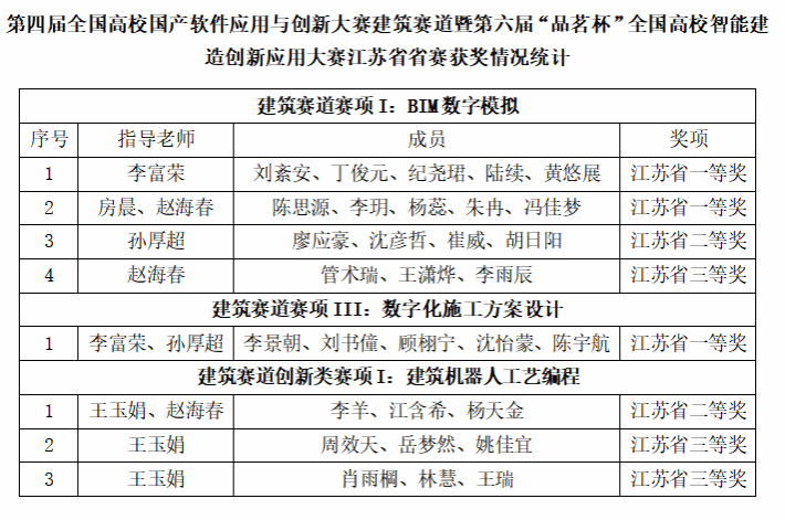近日,江苏省建设教育协会公布了第四届全国高校国产软件应用与创新大赛建筑赛道暨第六届“品茗杯”全国高校智能建造创新应用大赛江苏省省赛结果,PlayAce积极组织队伍参赛,分别获江苏省一等奖3项、二等奖2项、三等奖3项。