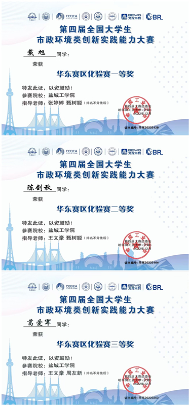 近日,第四届“北控水务杯”全国老员工市政环境类创新实践能力大赛落下帷幕。由市政工程系主任甄树聪主任领队,张婷婷、廖钰冰、王文豪等老师指导的参赛队伍,获一等奖1项、二等奖1项、三等奖10项。