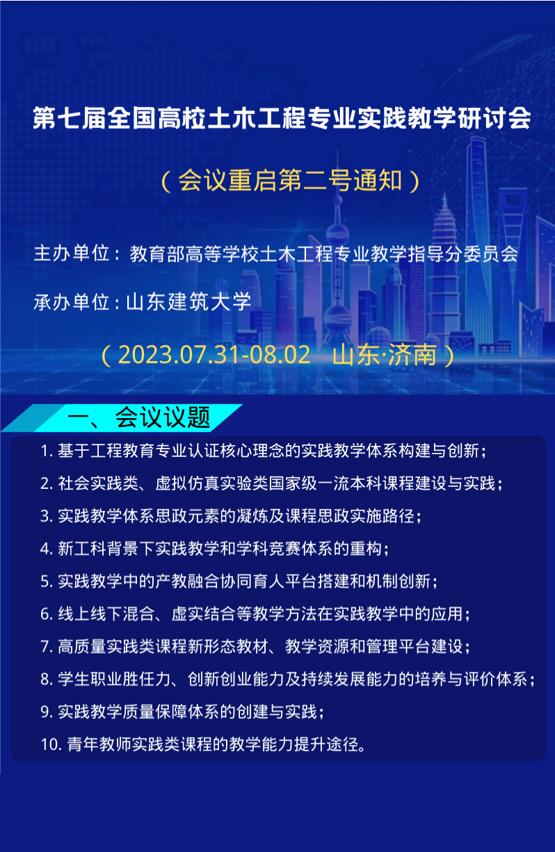 第七届全国高校土木工程专业实践教学研讨会(山东·济南)
