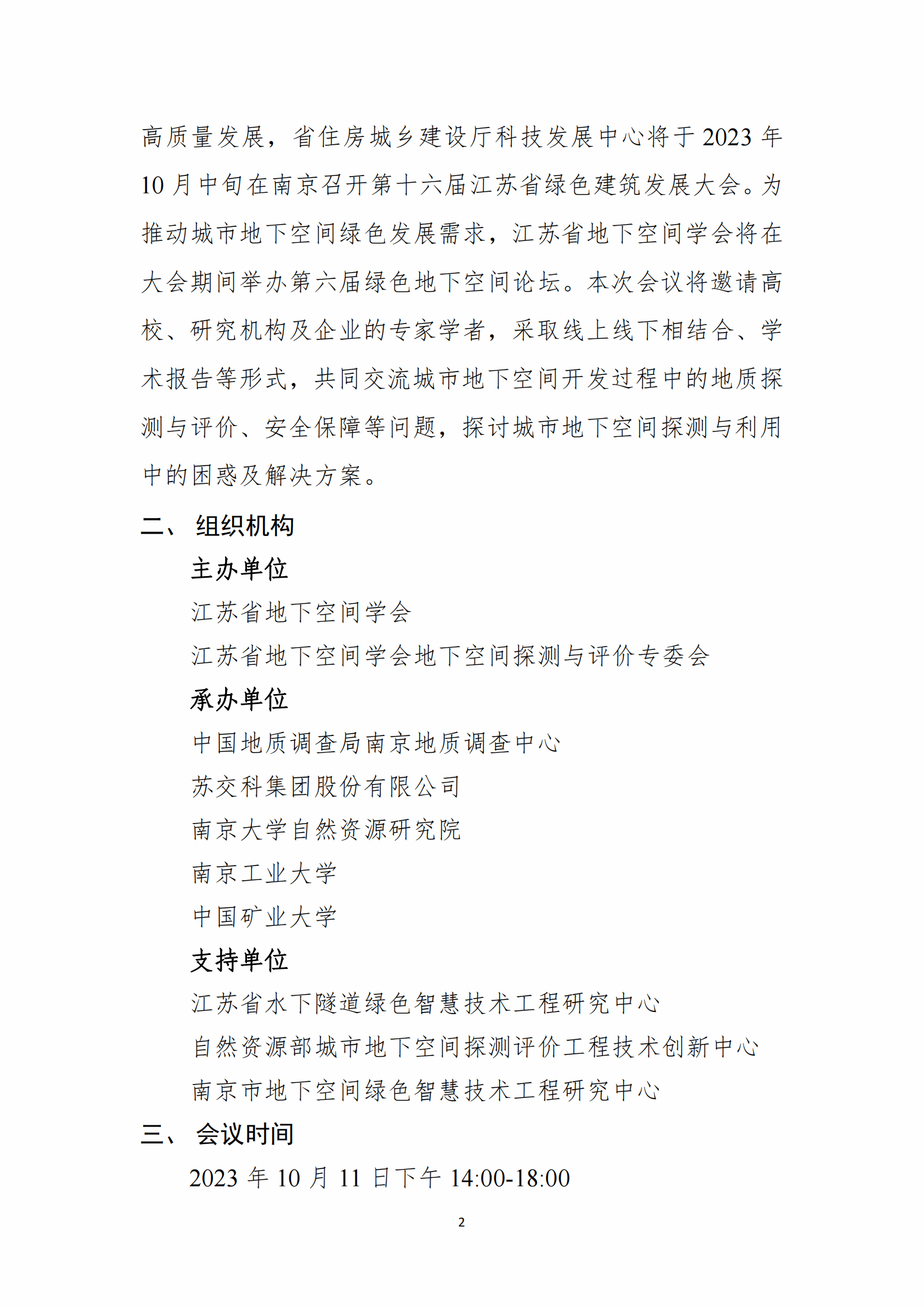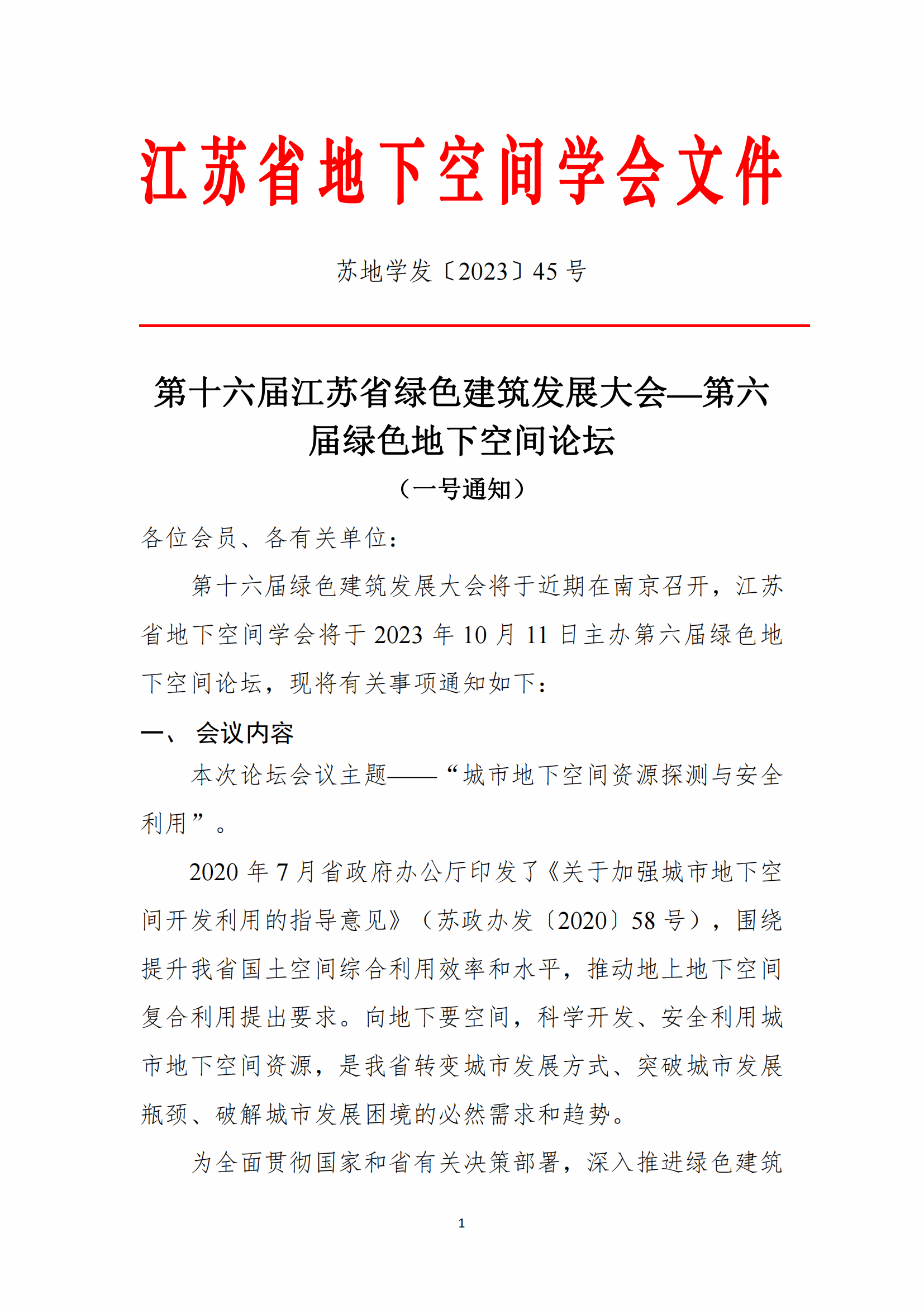 第十六届江苏省绿色建筑发展大会—第六届绿色地下空间论坛(1号通知)