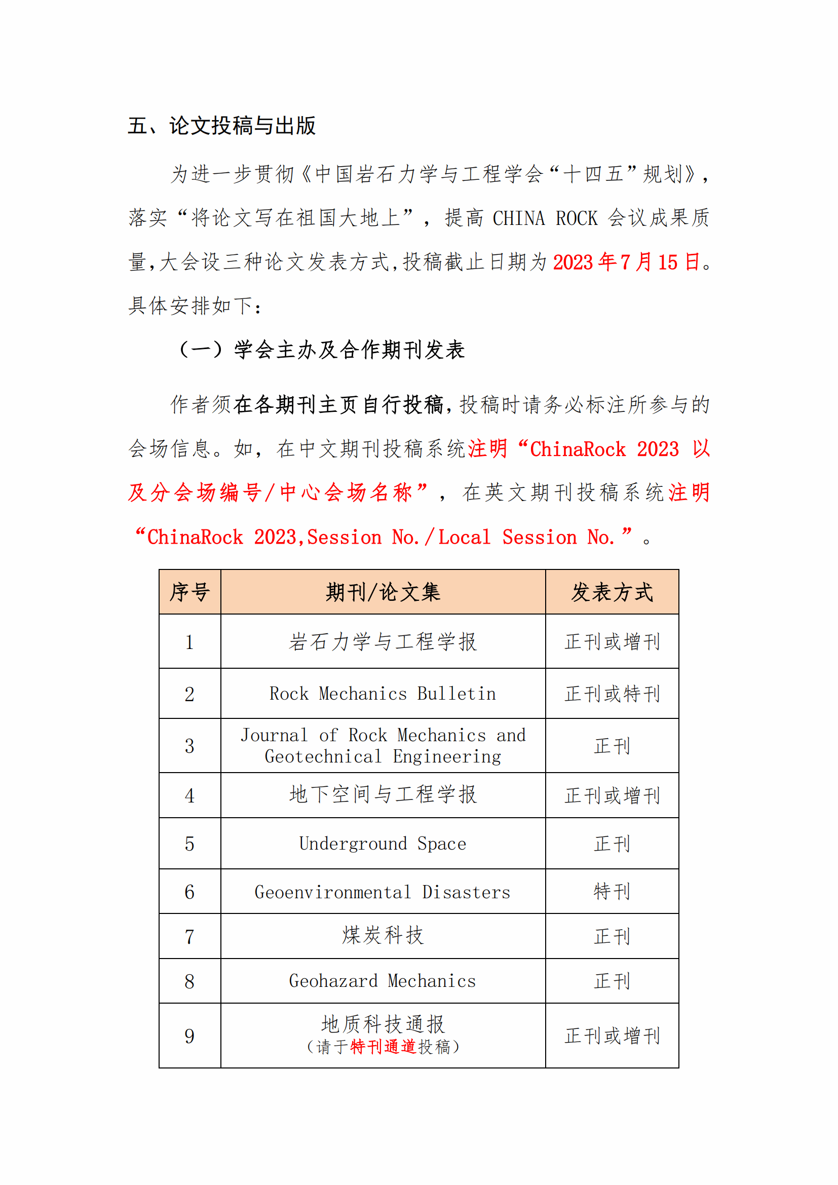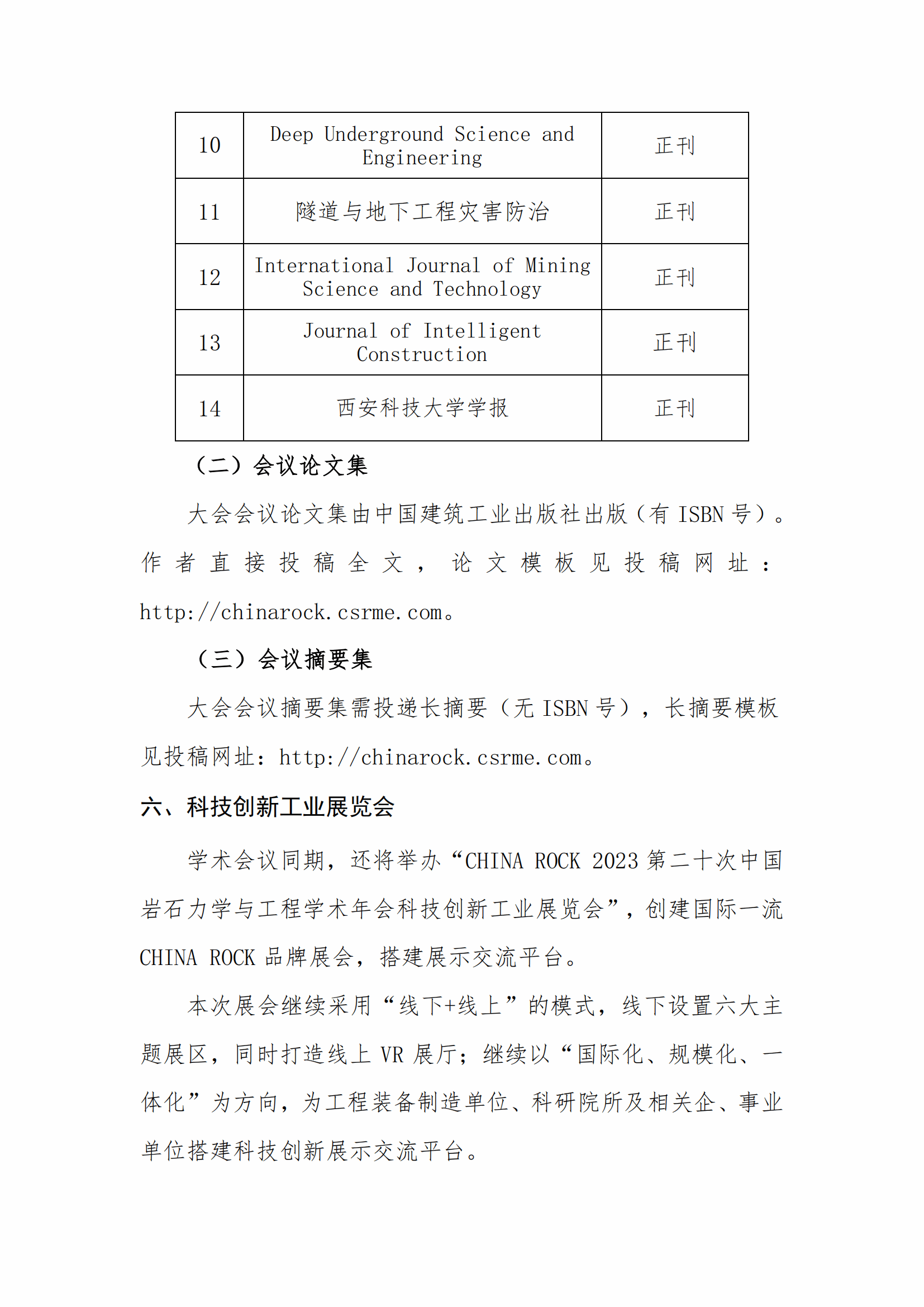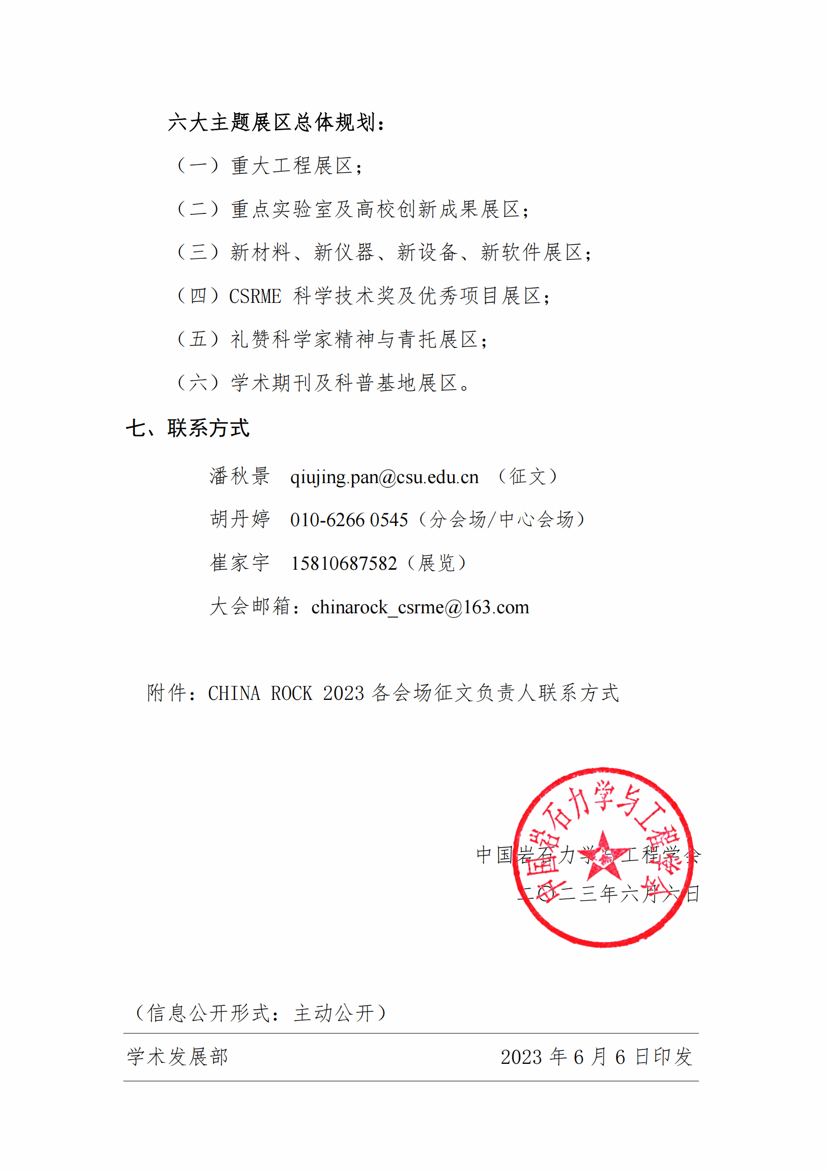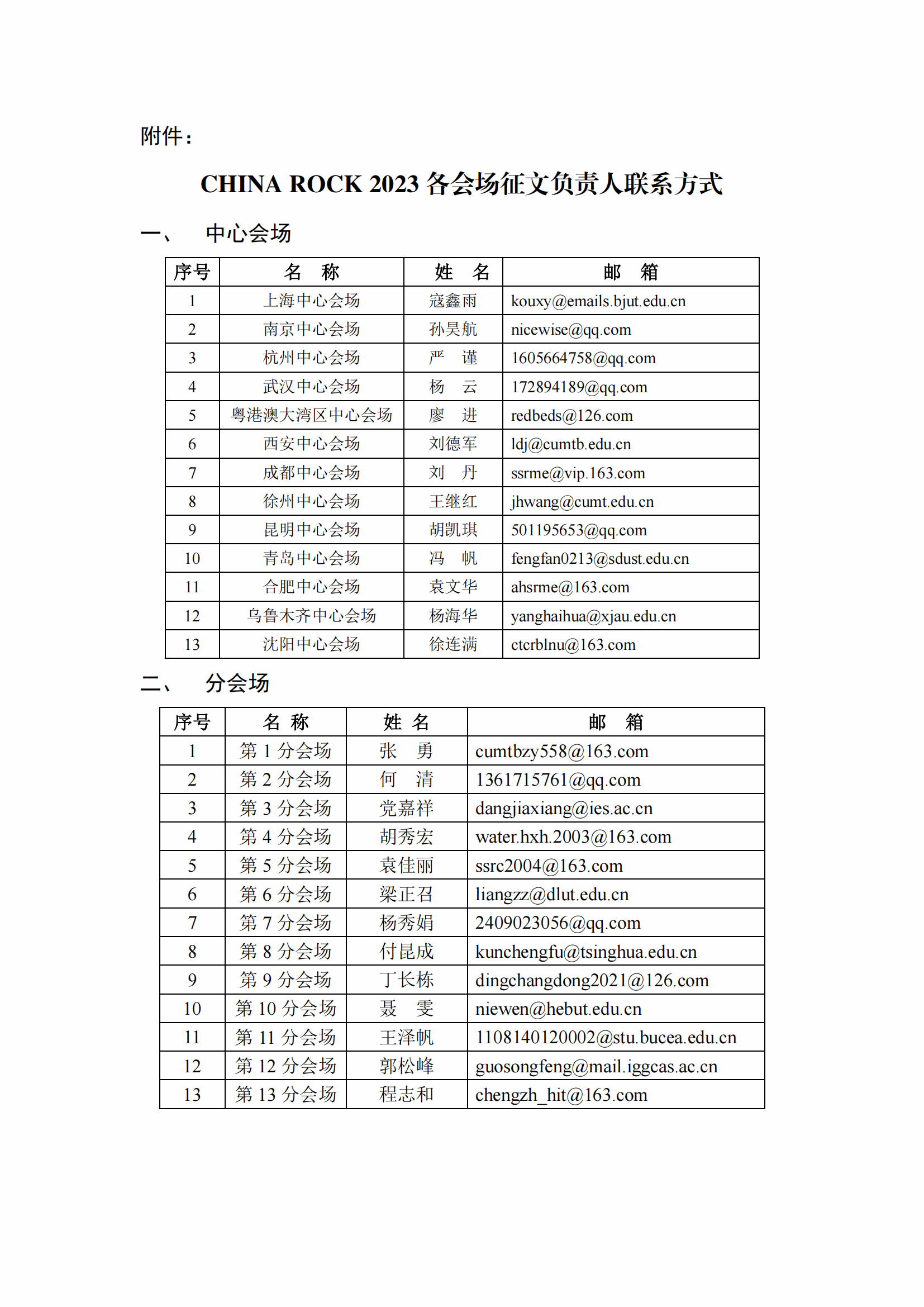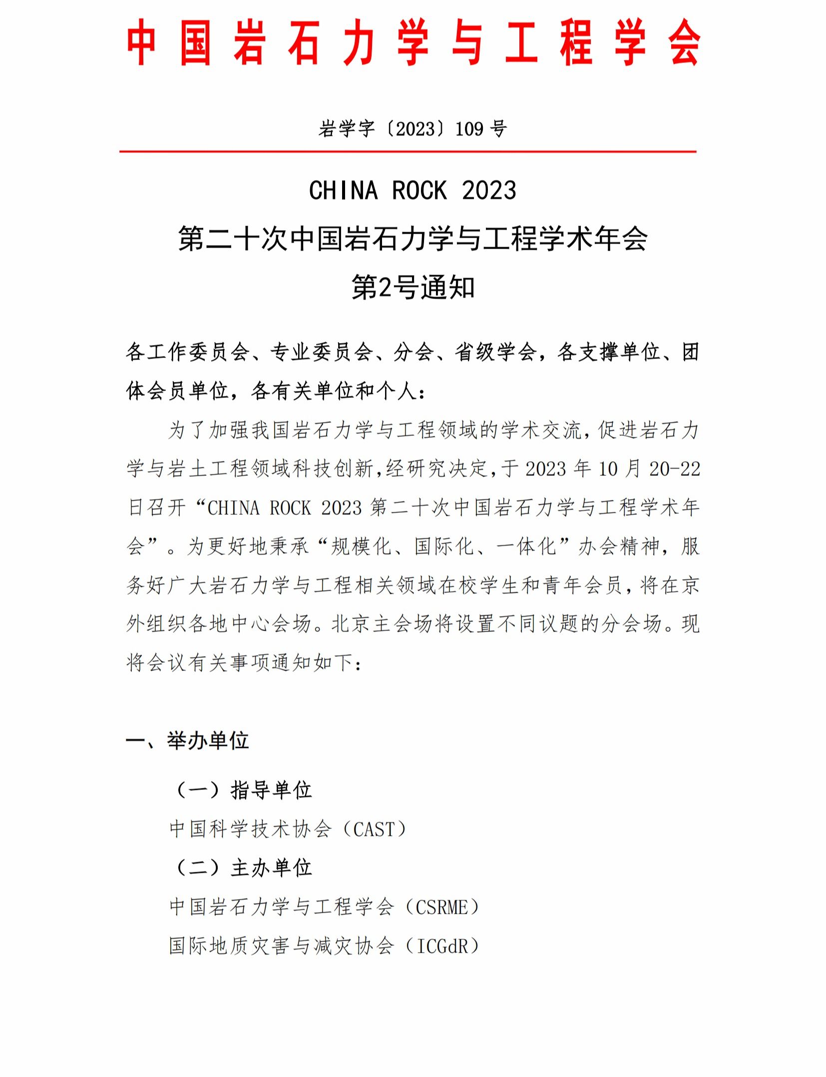 CHINA ROCK 2023 第二十次中国岩石力学与工程学术年会第2号通知