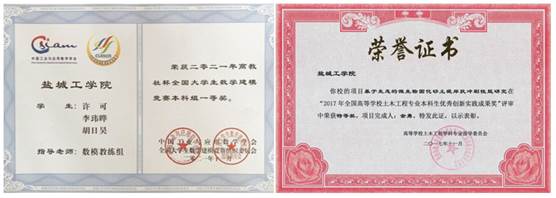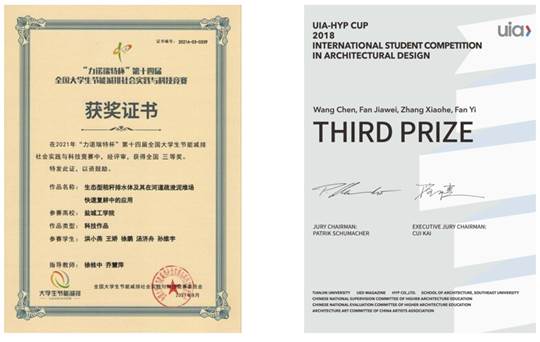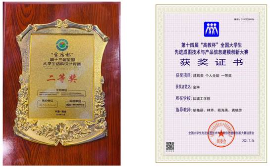 获奖情况:获2020-2021年度国家奖学金,2018-2019、2020-2021学年国家励志奖学金、校一等奖学金5次、二等奖学金3次、三等奖学金1次,2021年江苏省第四届“构力杯”高校BIM装配式大赛设计组二等奖,2020年全国高等院校第二届“绿色建筑设计”技能大赛三等奖,2021年首届全国老员工工业化建筑与智慧建造竞赛三等奖等。