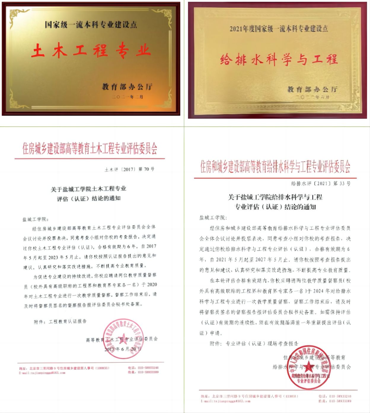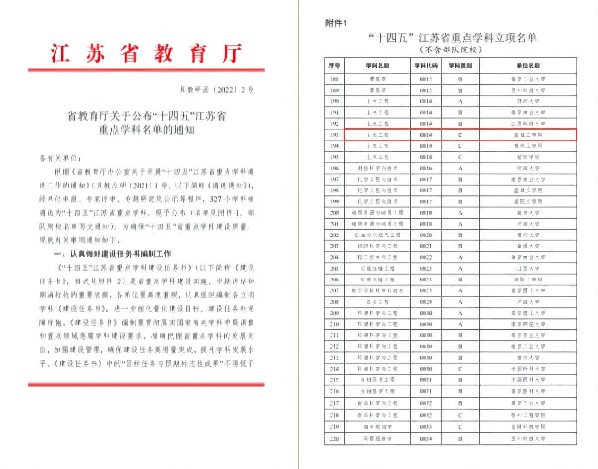 本专业两次通过土木工程专业评估(认证),为国家级一流本科专业建设点、国家特色专业建设点、教育部“卓越计划”试点专业、江苏省品牌专业、江苏省课程思政示范专业、江苏省“卓工计划”2.0专业。