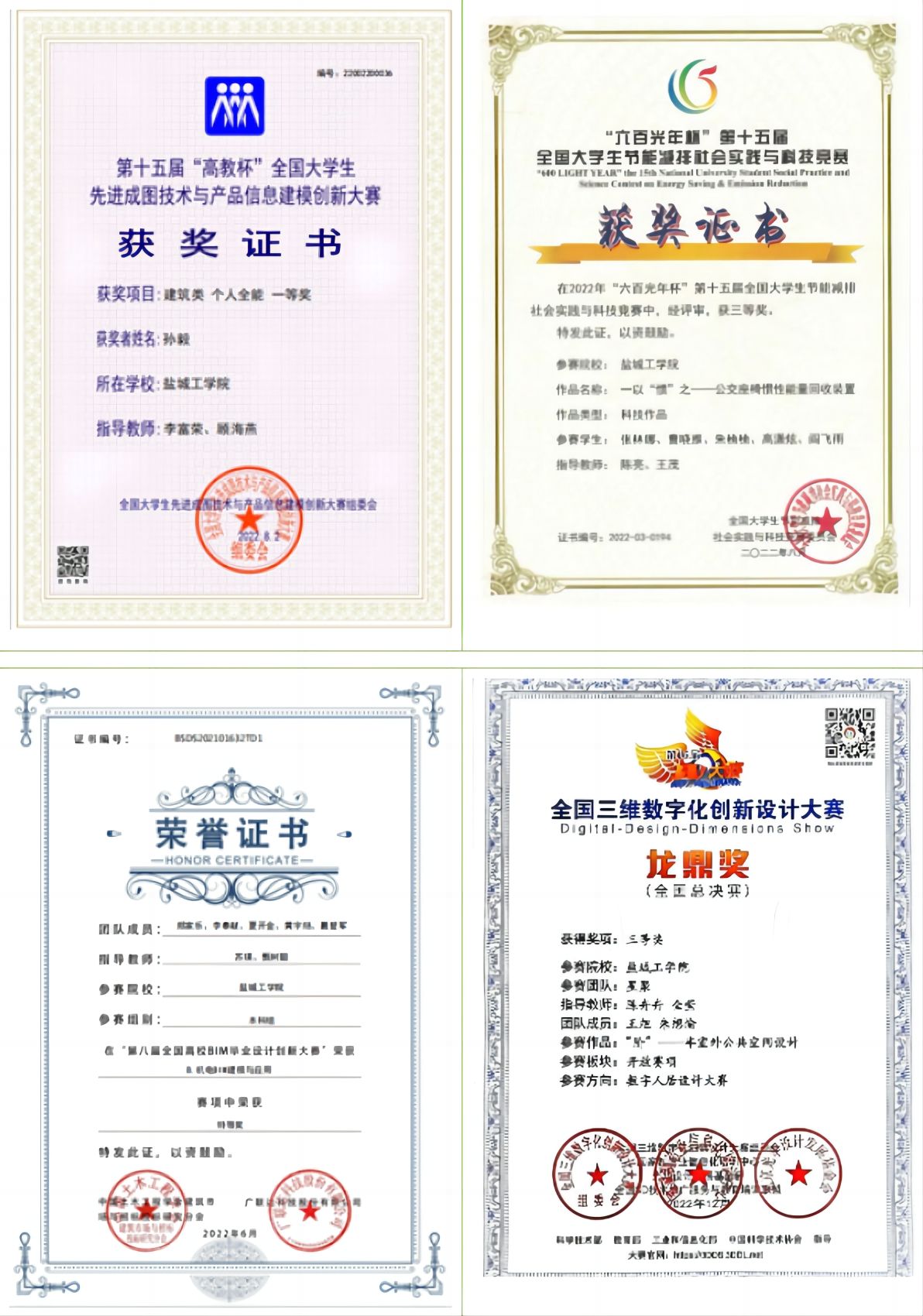 获奖情况:获校一等奖学金6次,二等奖学金2次,2022年盐城市“黄海明珠”老员工奖学金,2020年全国老员工英语竞赛三等奖,2021年全国老员工先进成图技术与产品信息建模创新大赛个人全能二等奖、团体二等奖,2022年全国老员工结构设计信息技术大赛三等奖,2021年江苏省首届老员工先进成图技术与产品信息建模大赛团体二等奖等。