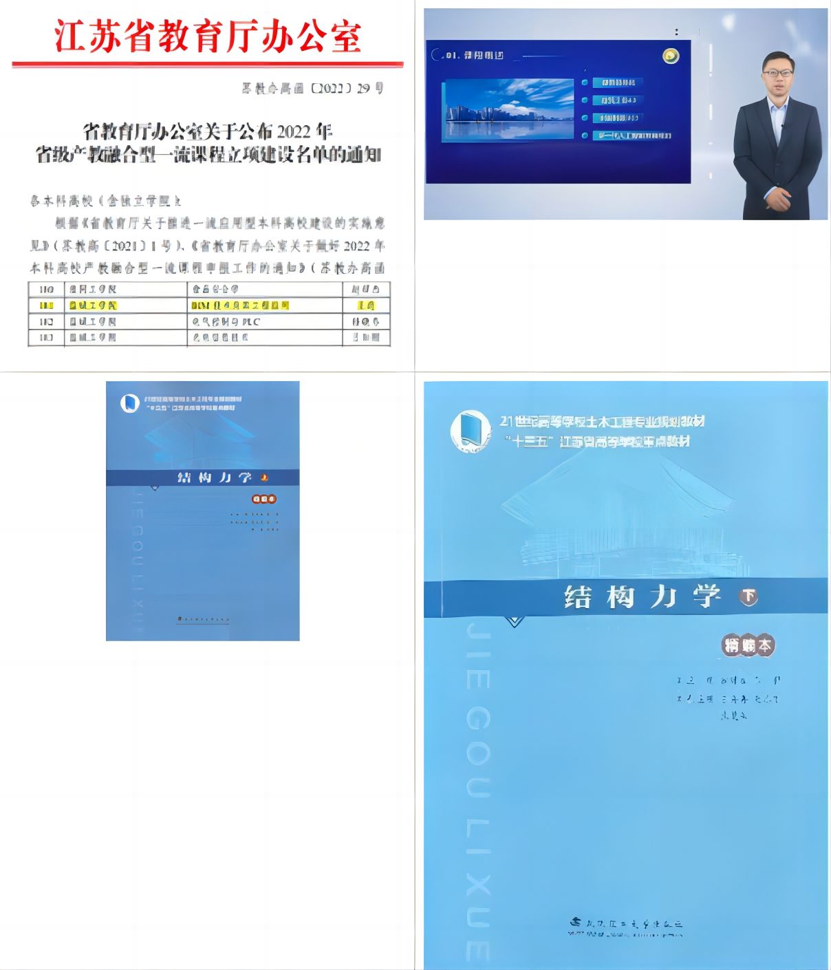 公司高度重视课程与教材建设工作,现有国家级一流本科课程3门,江苏省一流课程4门,江苏省课程思政示范课程1门,校级课程30余门。近年来,公司出版教材20余部,其中,江苏省重点教材8部,住建部规划教材7部,省优秀培育教材和省职业教育规划教材各1部。