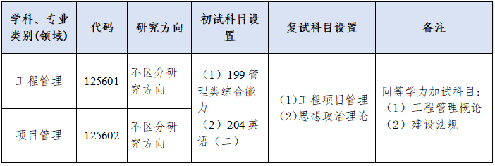 报名专业:① 工程管理(专业学位硕士、专业代码125601);