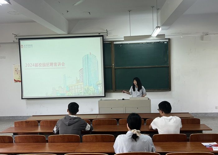 太平洋房地产经纪有限公司人事负责人围绕企业简介、校招岗位、福利待遇、校企合作、业务介绍等五个方面进行了宣讲。宣讲会后,进行了简历投递、面试等环节。