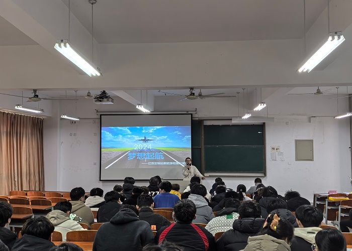 2024年12月26日上午,校企合作企业江苏正锐达新能源有限公司总经理上官鹏程博士应邀到公司开展2025届毕业生就业指导课,公司党委副书记陈广正、学工办负责人、毕业班辅导员、毕业生代表100余人参加。