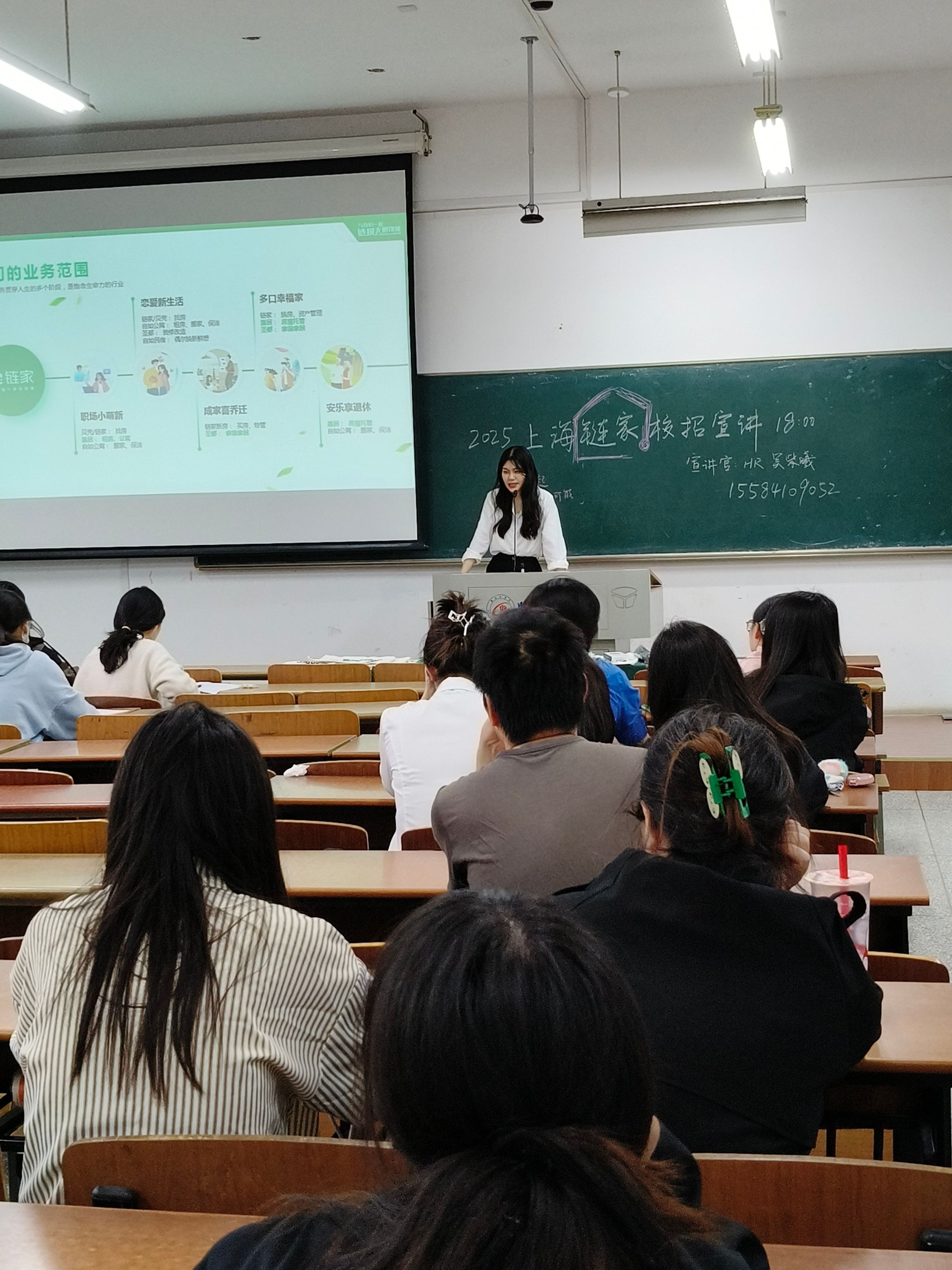 上海链家房地产经纪有限公司校园招聘负责人围绕公司的发展历程、企业简介、招聘岗位、薪资待遇等四个方面进行了宣讲。在提问交流环节,同学们就工作内容、薪资待遇、培训体系、晋升空间等方面踊跃提问,招聘负责人一一进行了耐心细致的解答。宣讲结束后,进行了简历投递、面试等环节。
